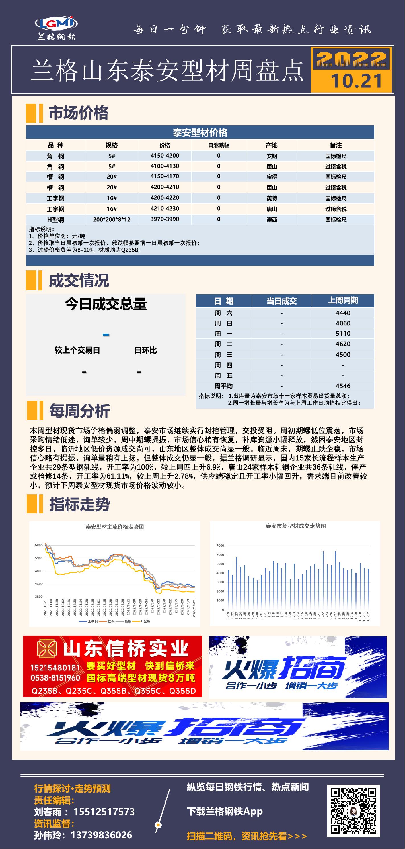 - 泰安型材周盘点:本周价格弱势调整 外围成交显一般 预计下周价格稳中盘整2022/10/21