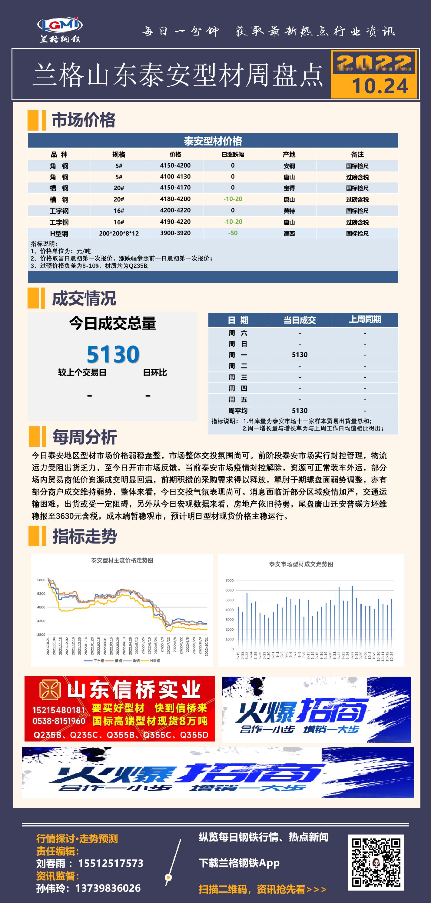 - 泰安型材日盘点:价格弱稳盘整 低价资源成交明显回温2022/10/24