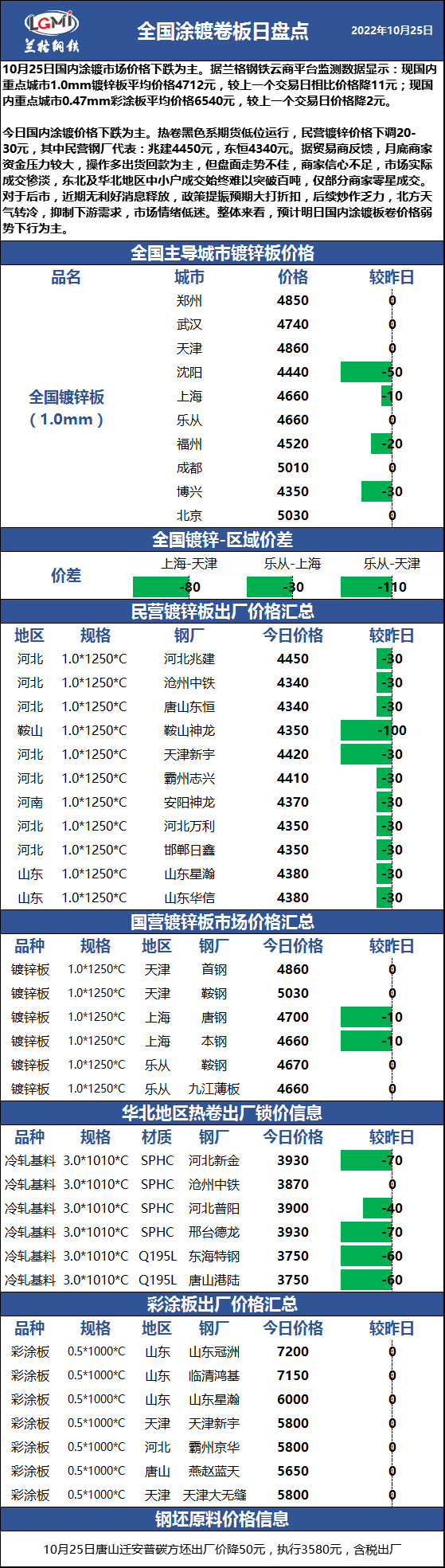 兰格涂镀板卷日盘点:涂镀价格下跌为主 市场成交惨淡