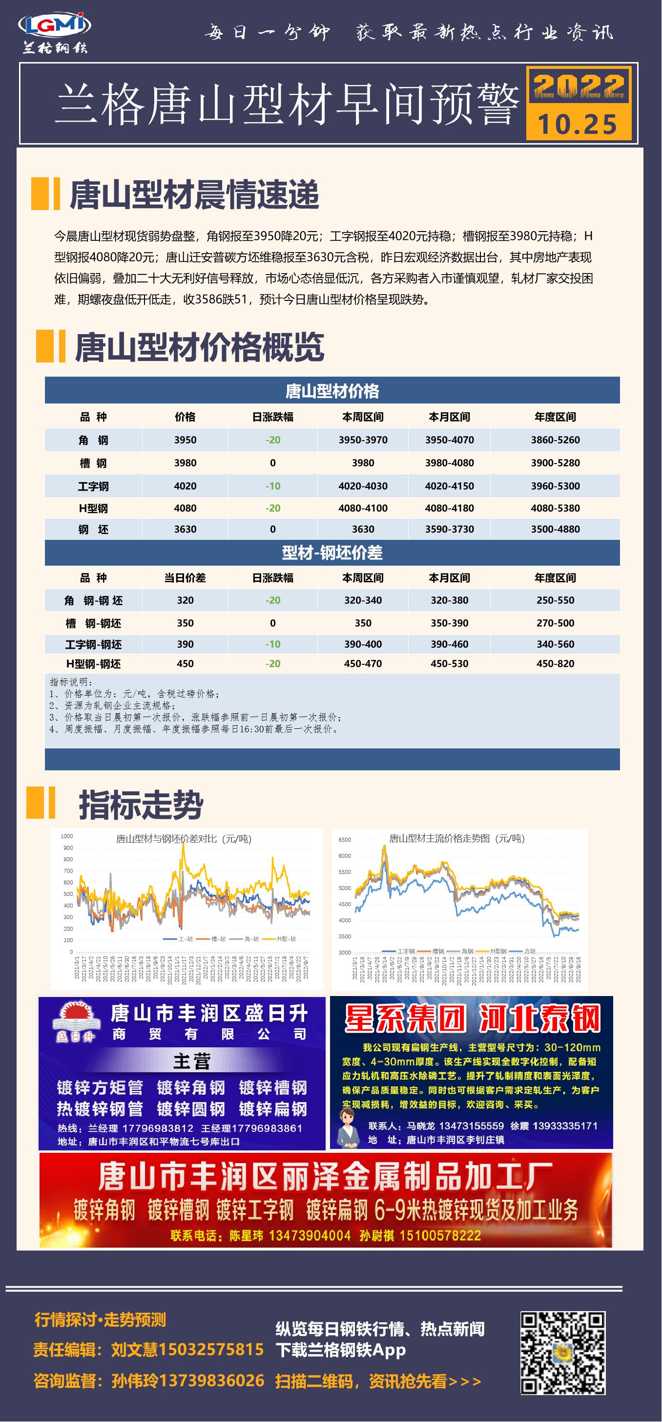 - 10月25日兰格唐山型材早间预警2022/10/25