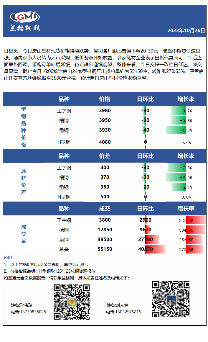 - 唐山型材日盘点:成材弱势下调 低价资源交投放量2022/10/26