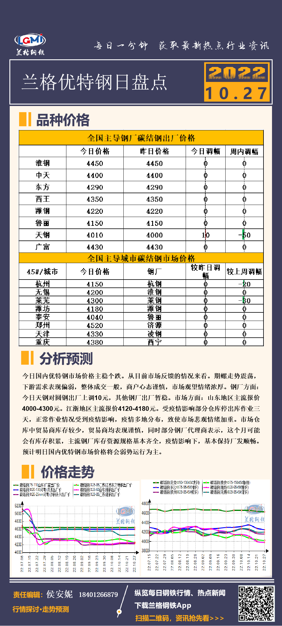 发表日期:2022/10/27 16:59:42 兰格钢铁