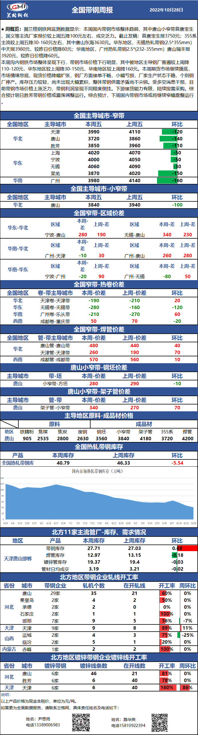 - 本周带钢市场价格下行明显 下游按需采购为主2022/10/28