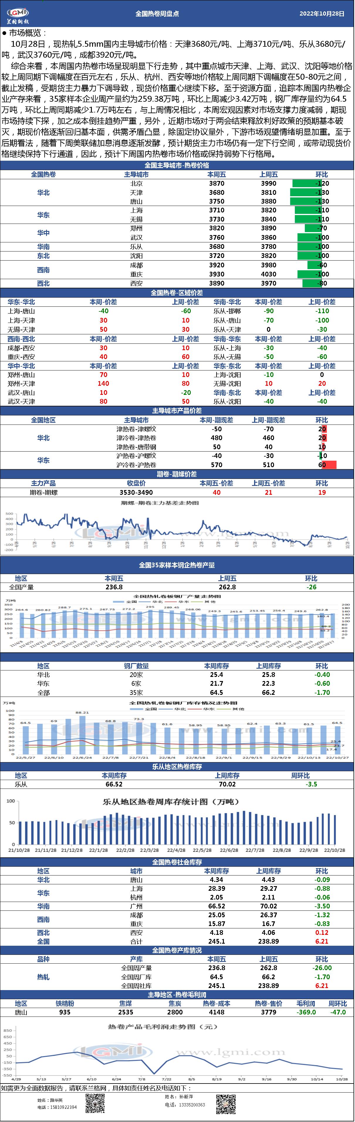 - 兰格热卷周盘点:期现市场深度下跌 终端需求极其清淡2022/10/28