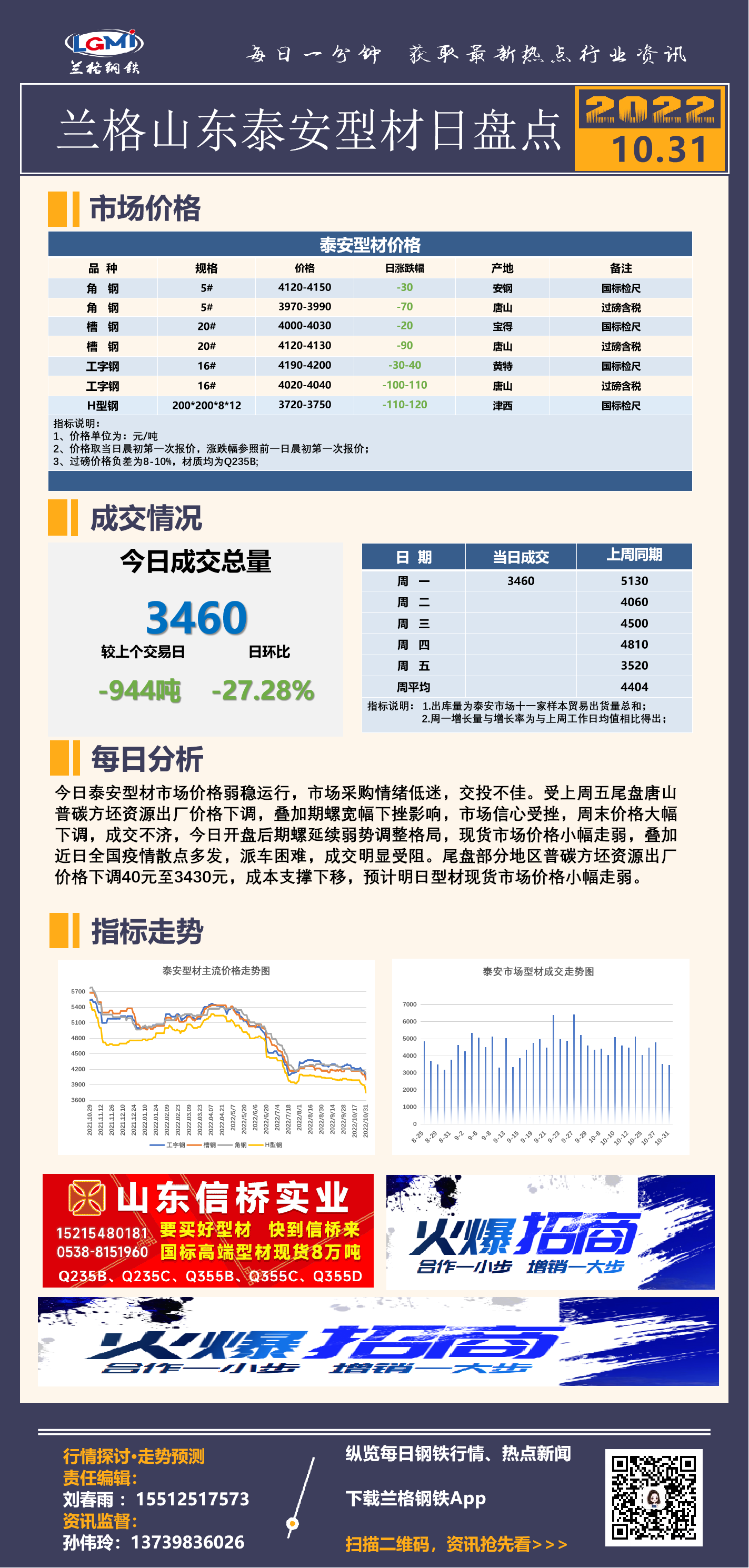- 泰安型材日盘点:价格尚未出现止跌信号 悲观情绪累加 交投氛围清淡2022/10/31