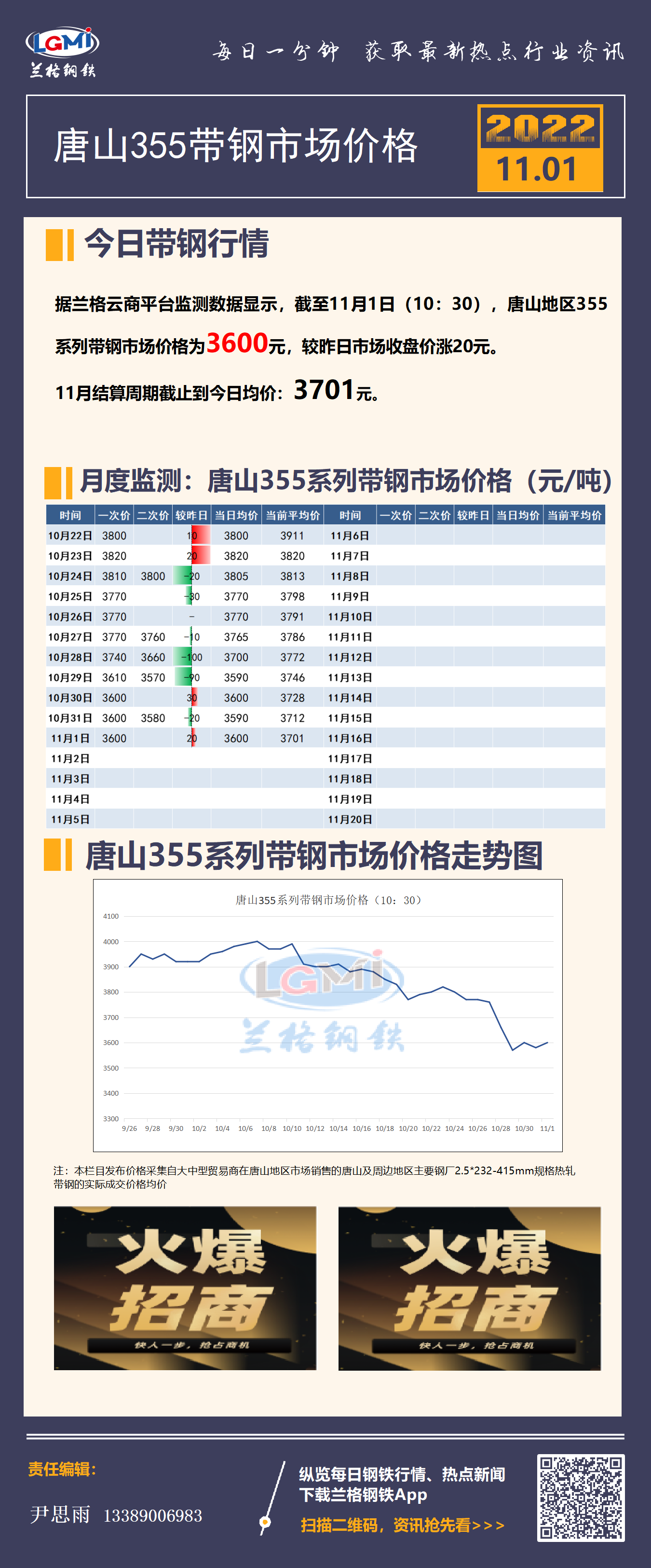 - 11月1日(10:30)唐山355系带钢市场价格2022/11/1