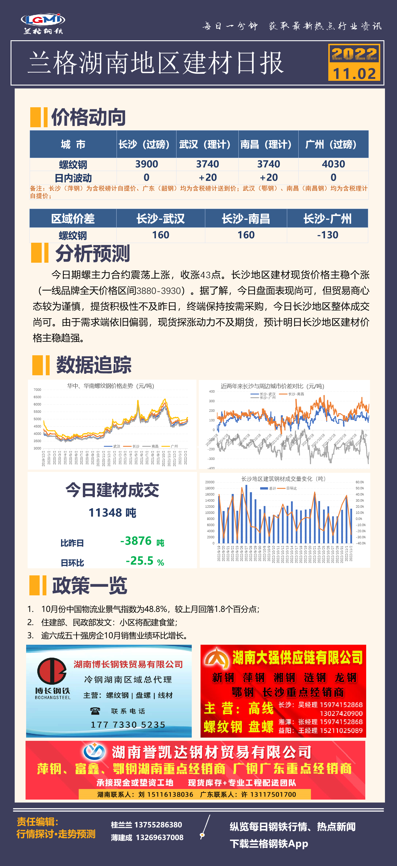 - 长沙建材价格主稳个涨 整体成交尚可2022/11/2