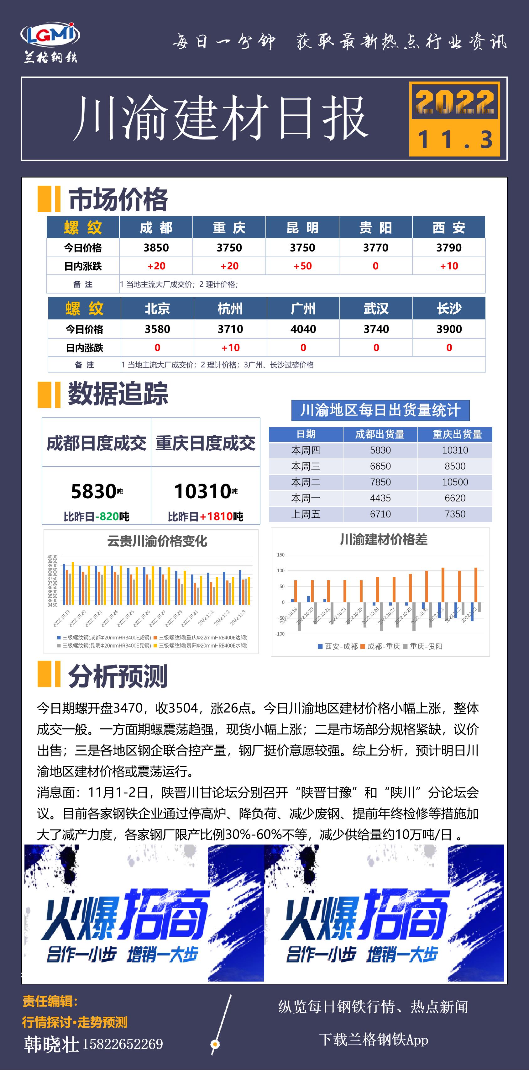 - 川渝地区建材价格小幅上涨 成交分化2022/11/3