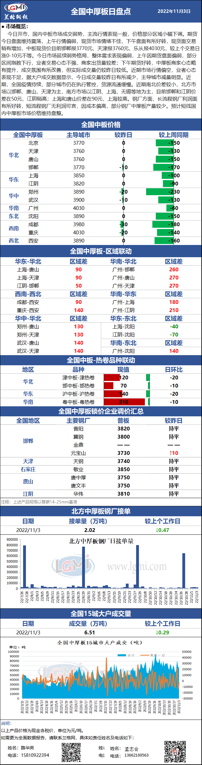 - 兰格中厚板日盘点:市场价格延续盘整 成家氛围偏弱2022/11/3