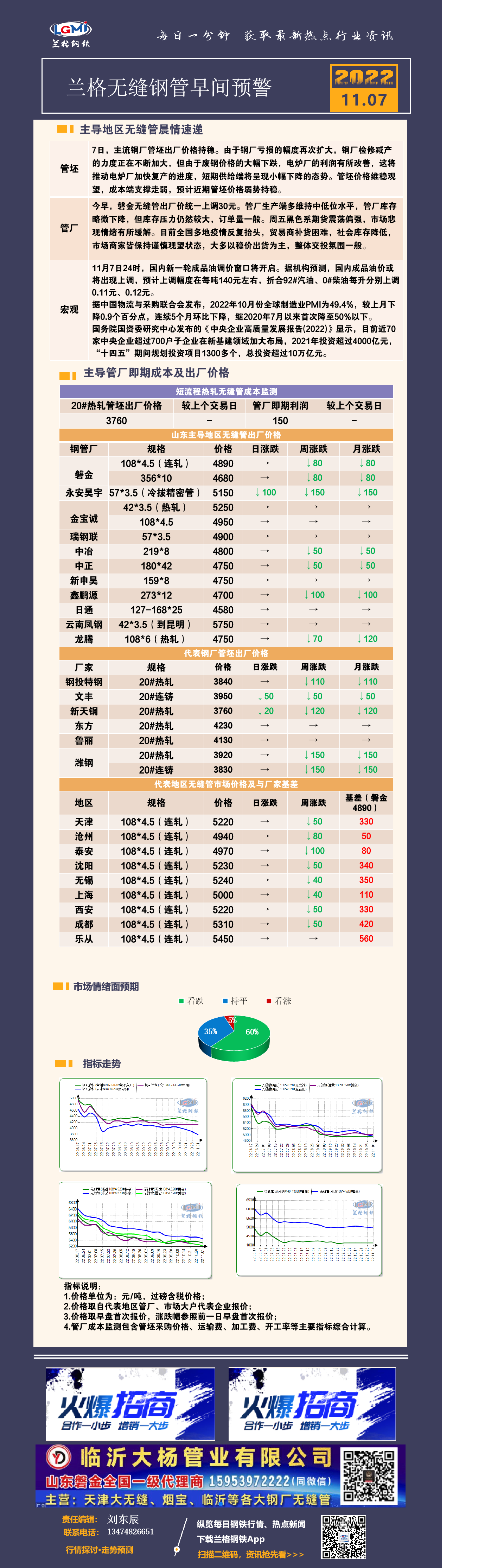 11月7日(9:20)兰格无缝钢管早间预警