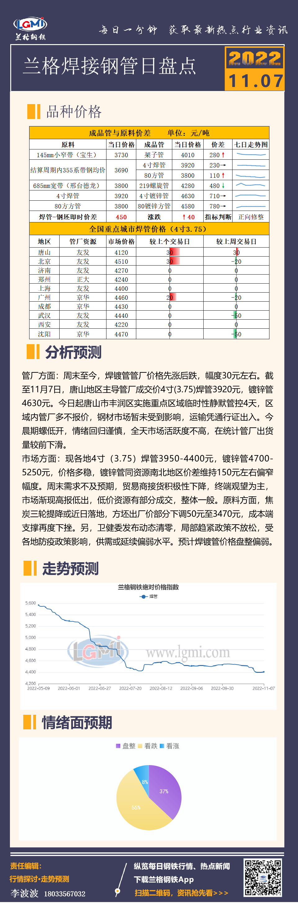 - 兰格焊管日盘点:期货拉高受阻 原料转降 成交下滑2022/11/7