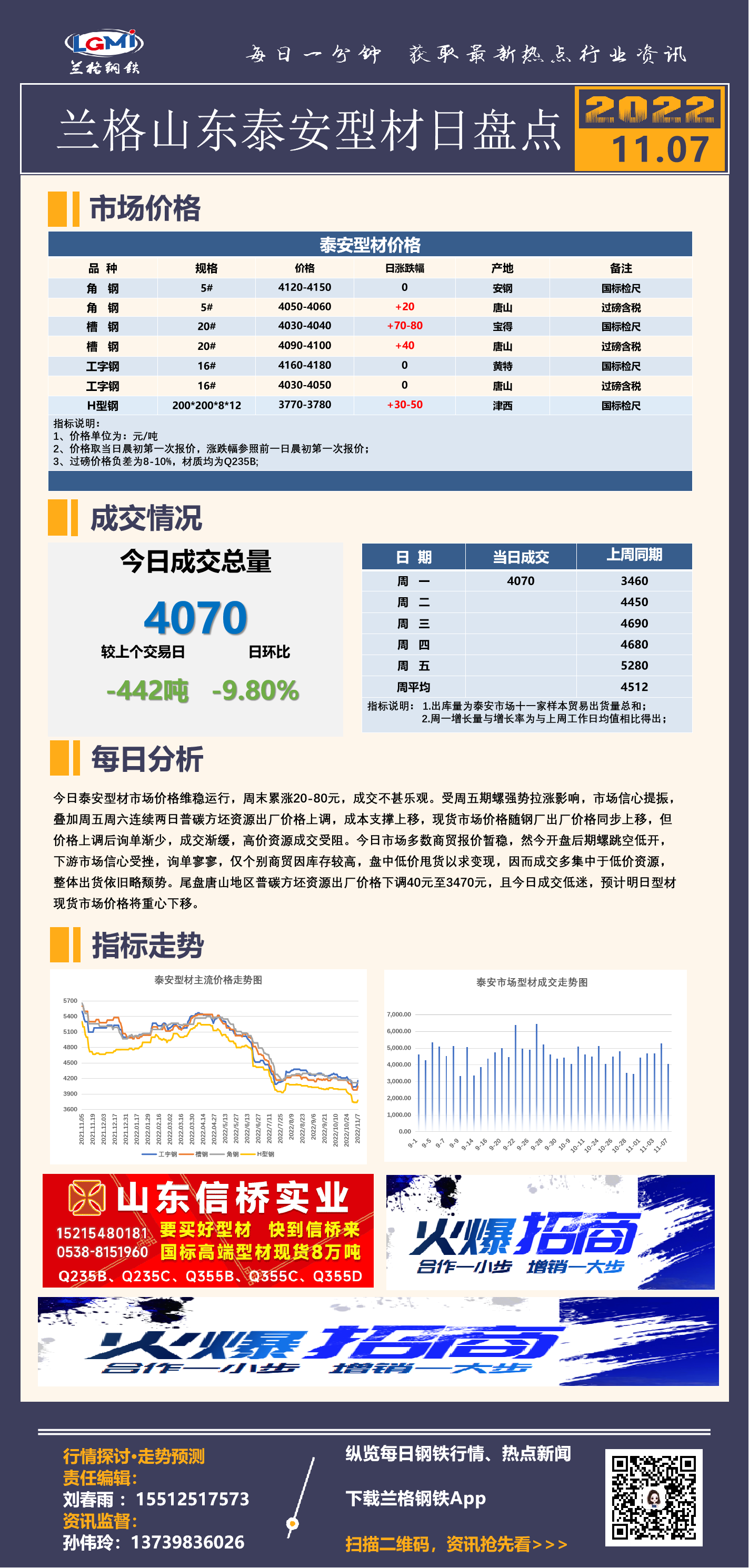 - 泰安型材日盘点: 高价资源交投受阻 成交显疲态2022/11/7