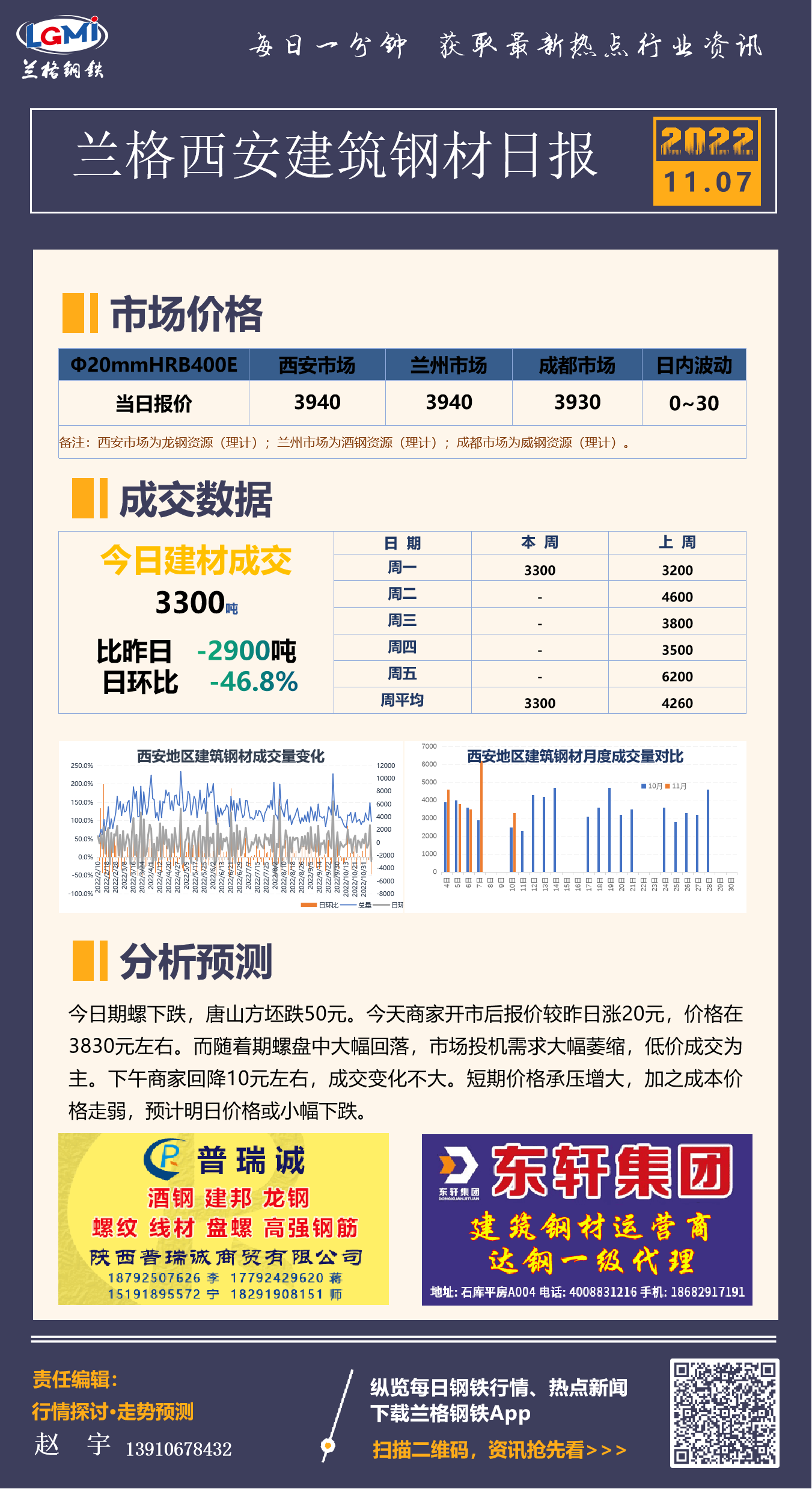西安市场建筑钢材价格上涨 成交大幅缩量