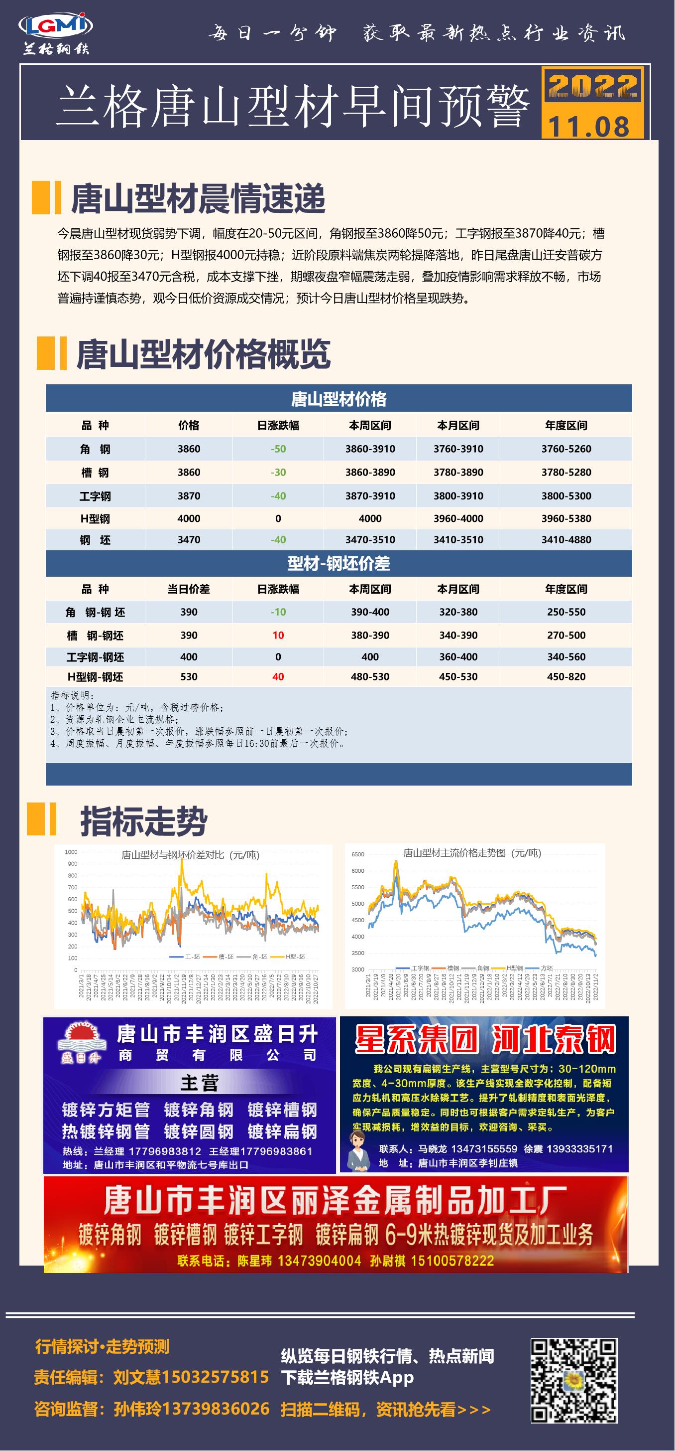- 11月8日兰格唐山型材早间预警2022/11/8