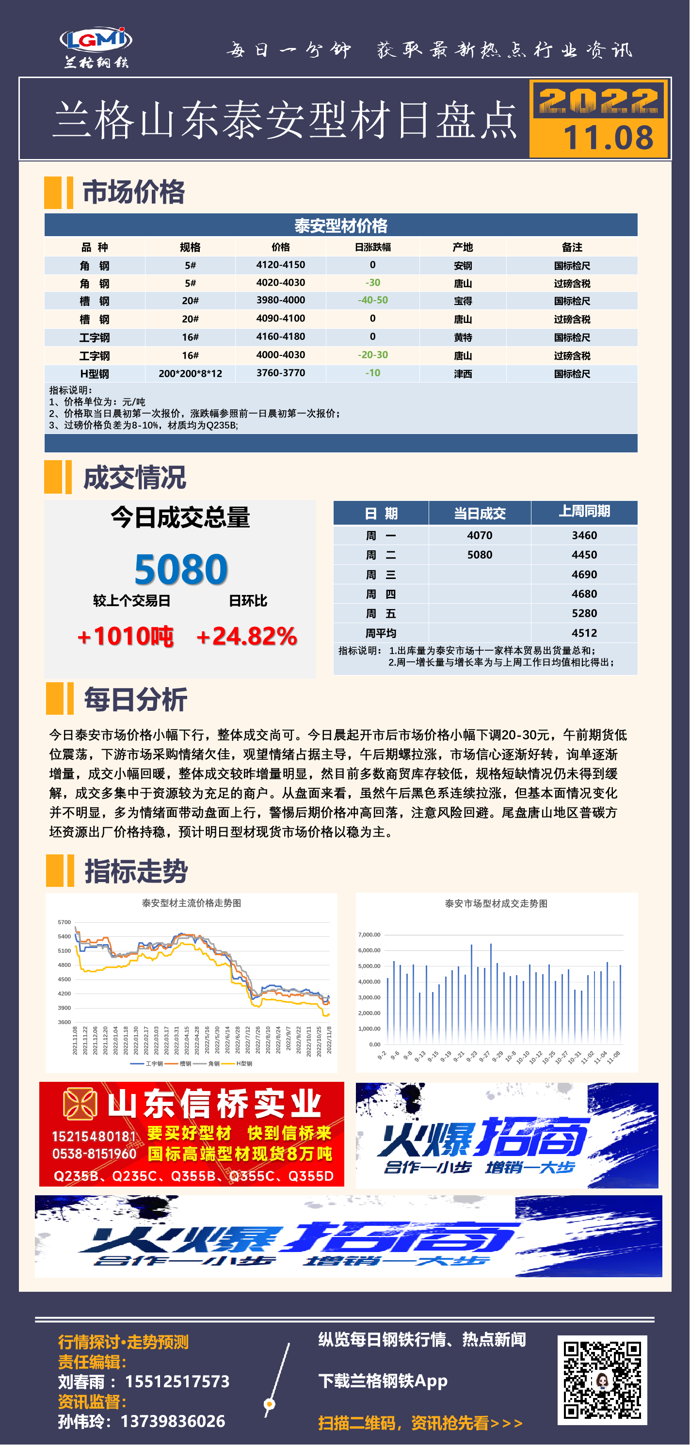 - 泰安型材日盘点:价格窄幅下行 期螺盘中拉涨 成交增量明显2022/11/8