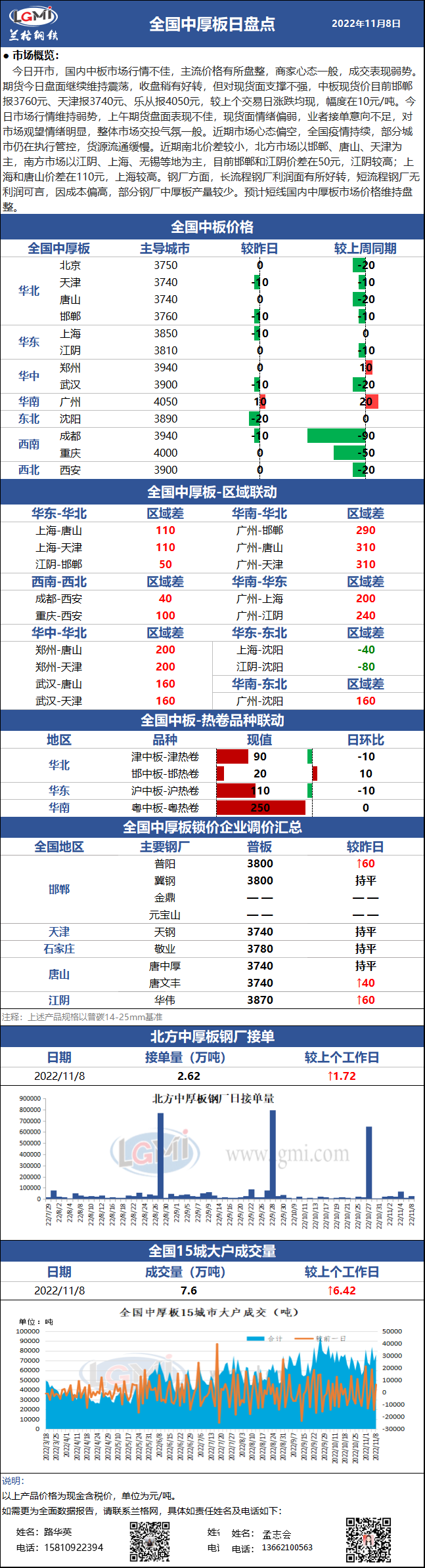 - 兰格中厚板日盘点:市场心态偏弱 价格继续盘整2022/11/8