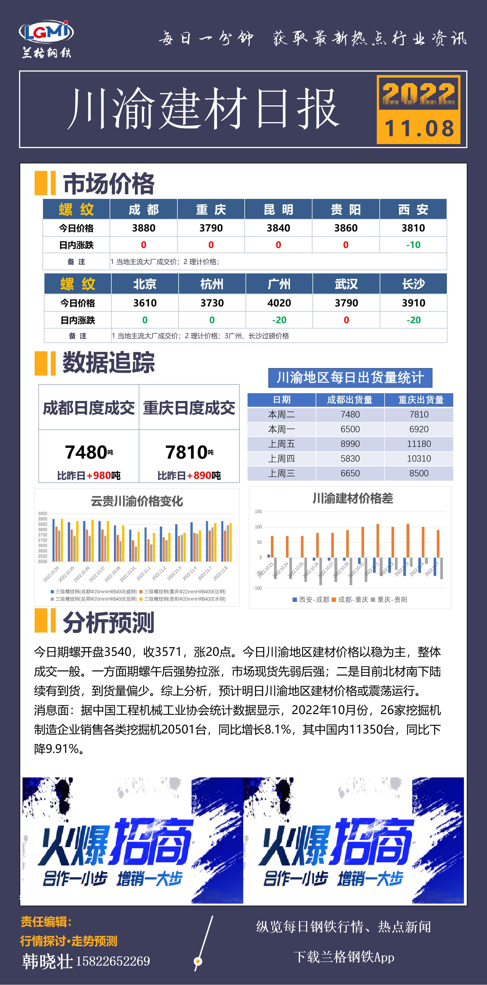 - 川渝地区建材价格以稳为主 成交一般2022/11/8