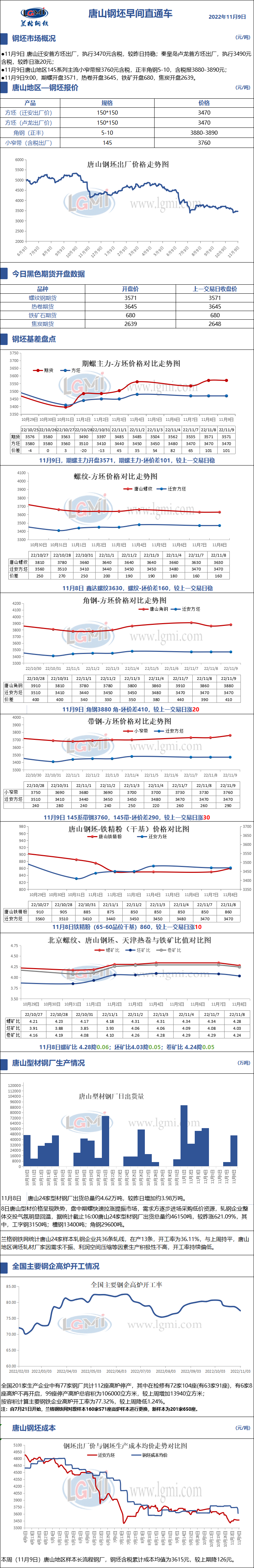 - 11月9日山西晋南钢铁建筑钢材出厂价格平稳2022/11/9