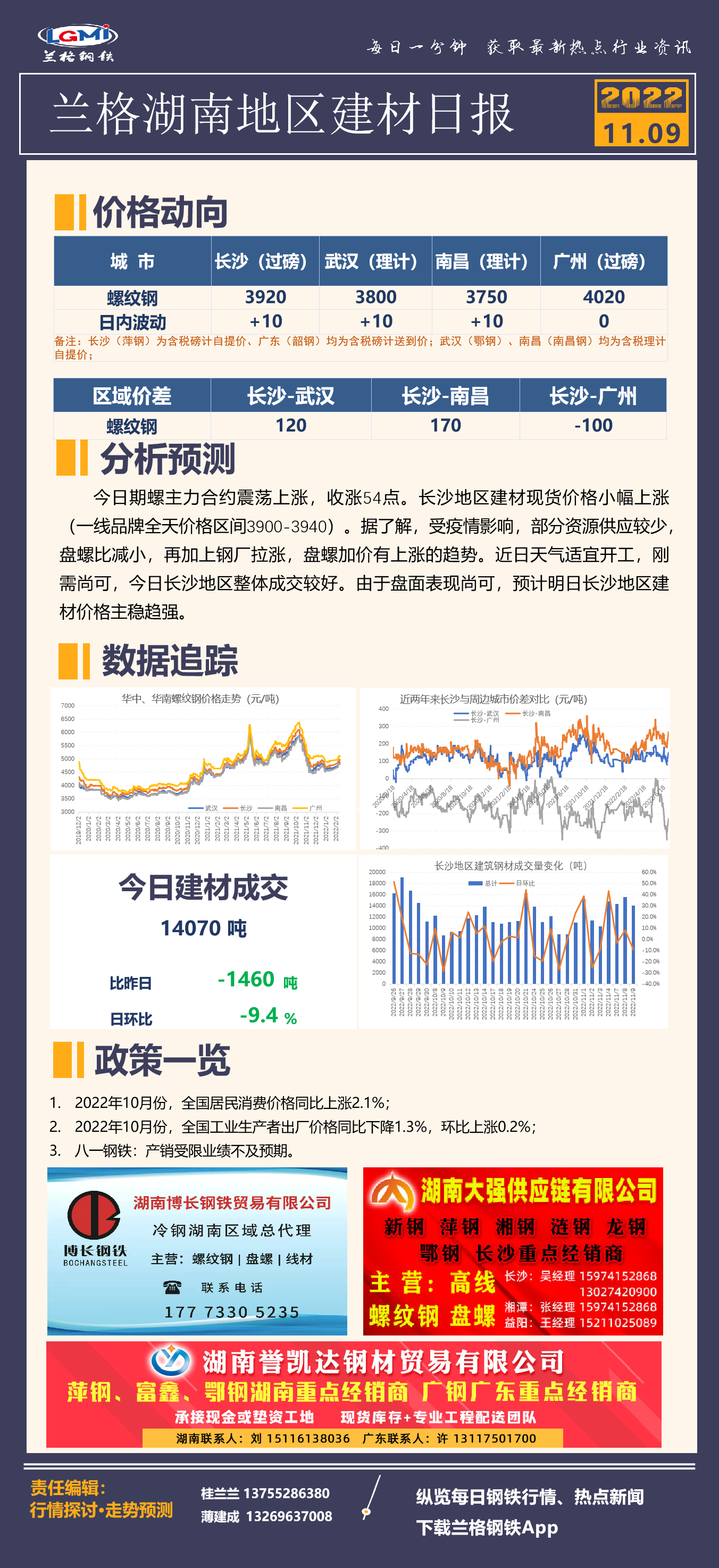 - 长沙建材价格小幅探涨 成交尚可2022/11/9