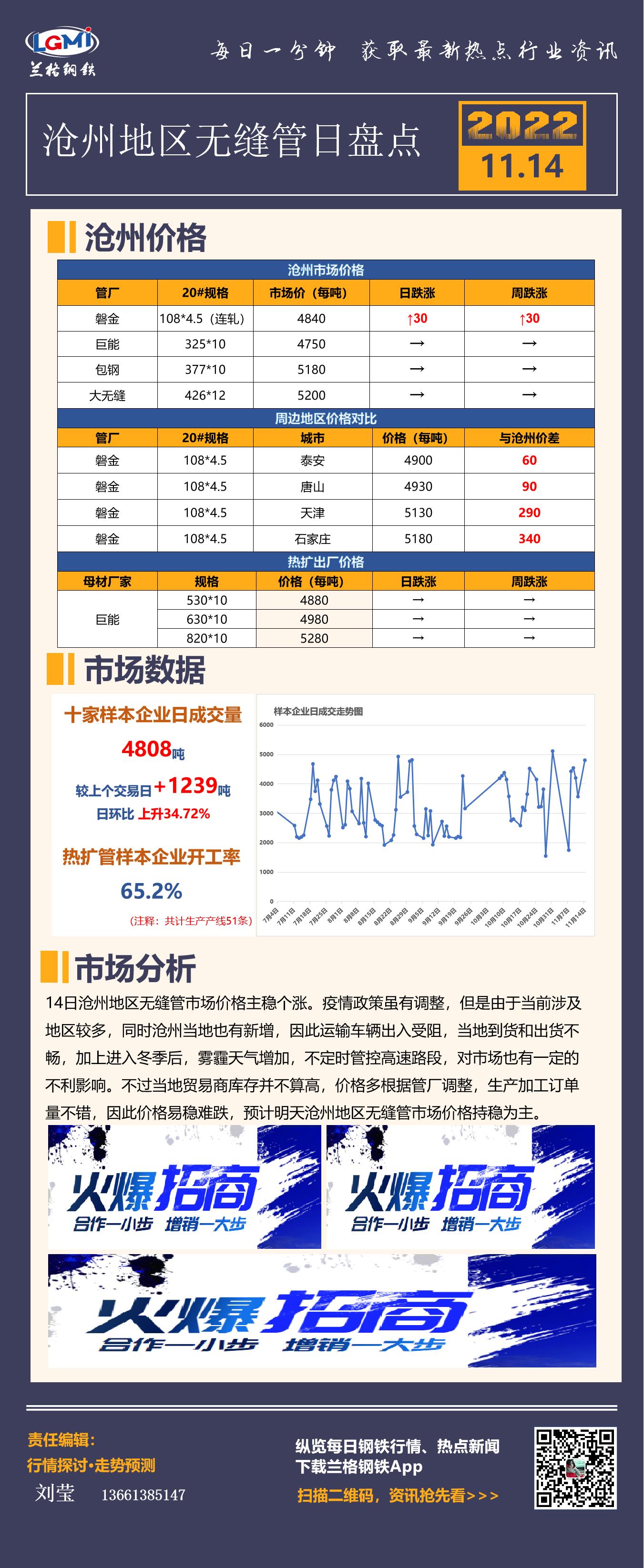 沧州无缝管日盘点:价格拉涨 市场交投情绪浓