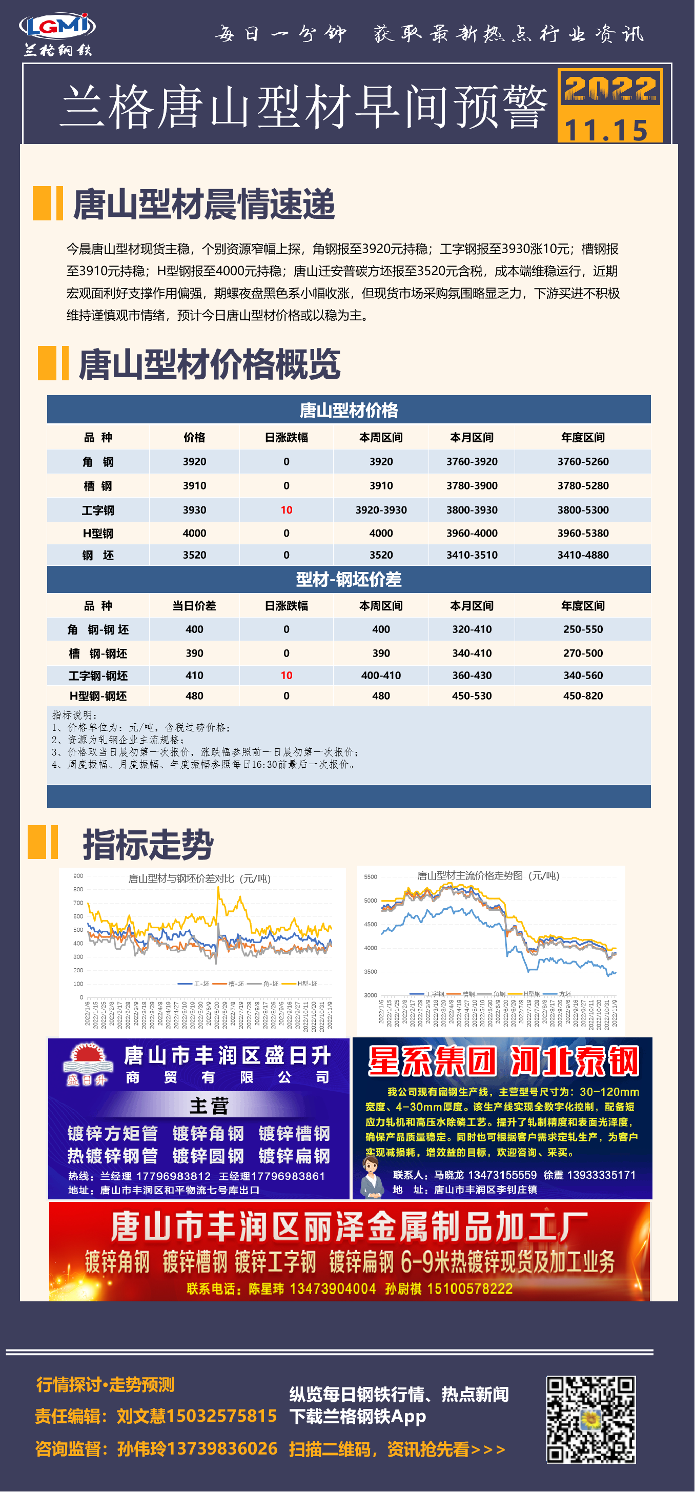 - 11月15日兰格唐山型材早间预警2022/11/15