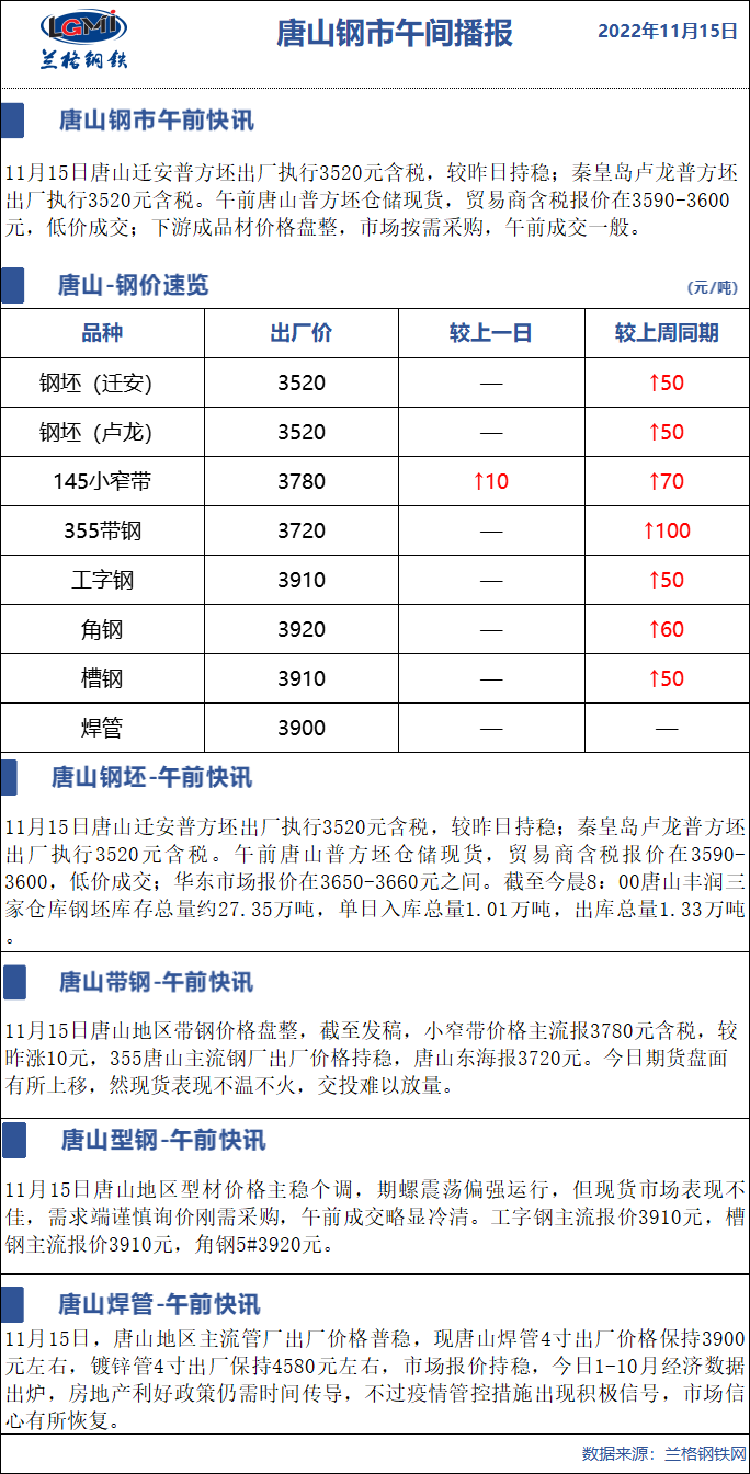 11月15日兰格唐山钢市午间播报