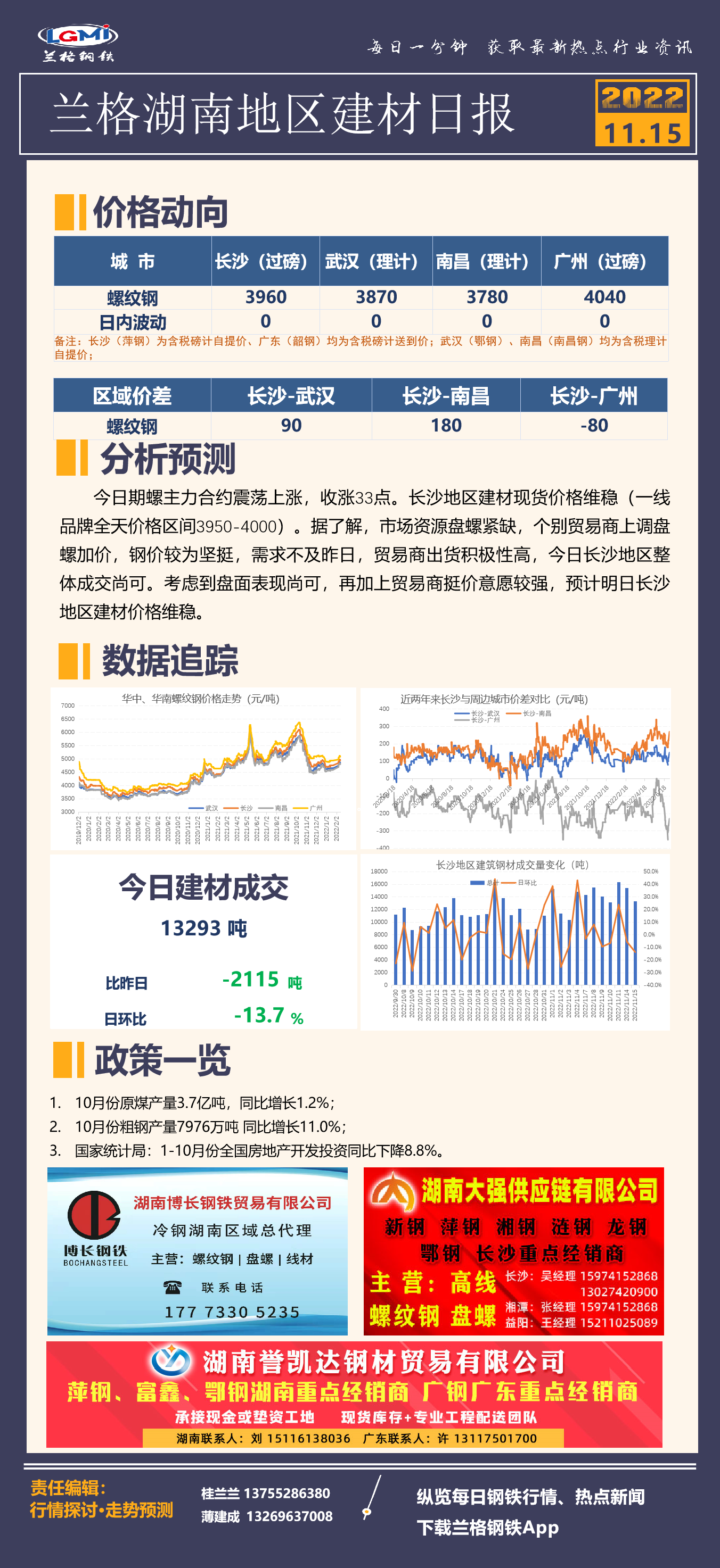 - 长沙建材价格维稳 成交尚可2022/11/15