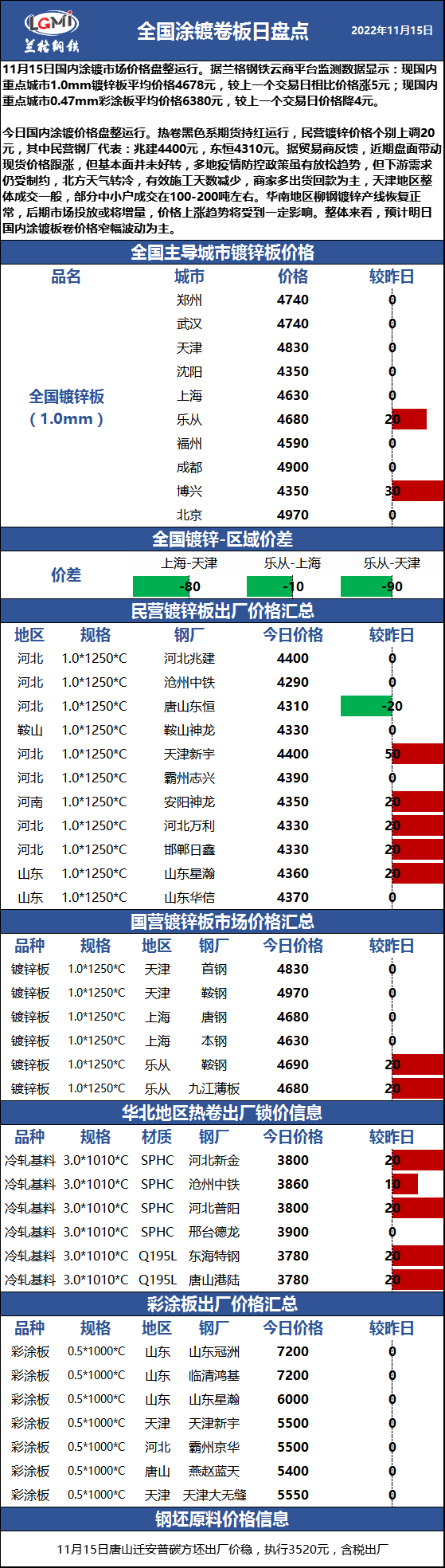 发表日期:2022/11/15 17:18:11 兰格钢铁