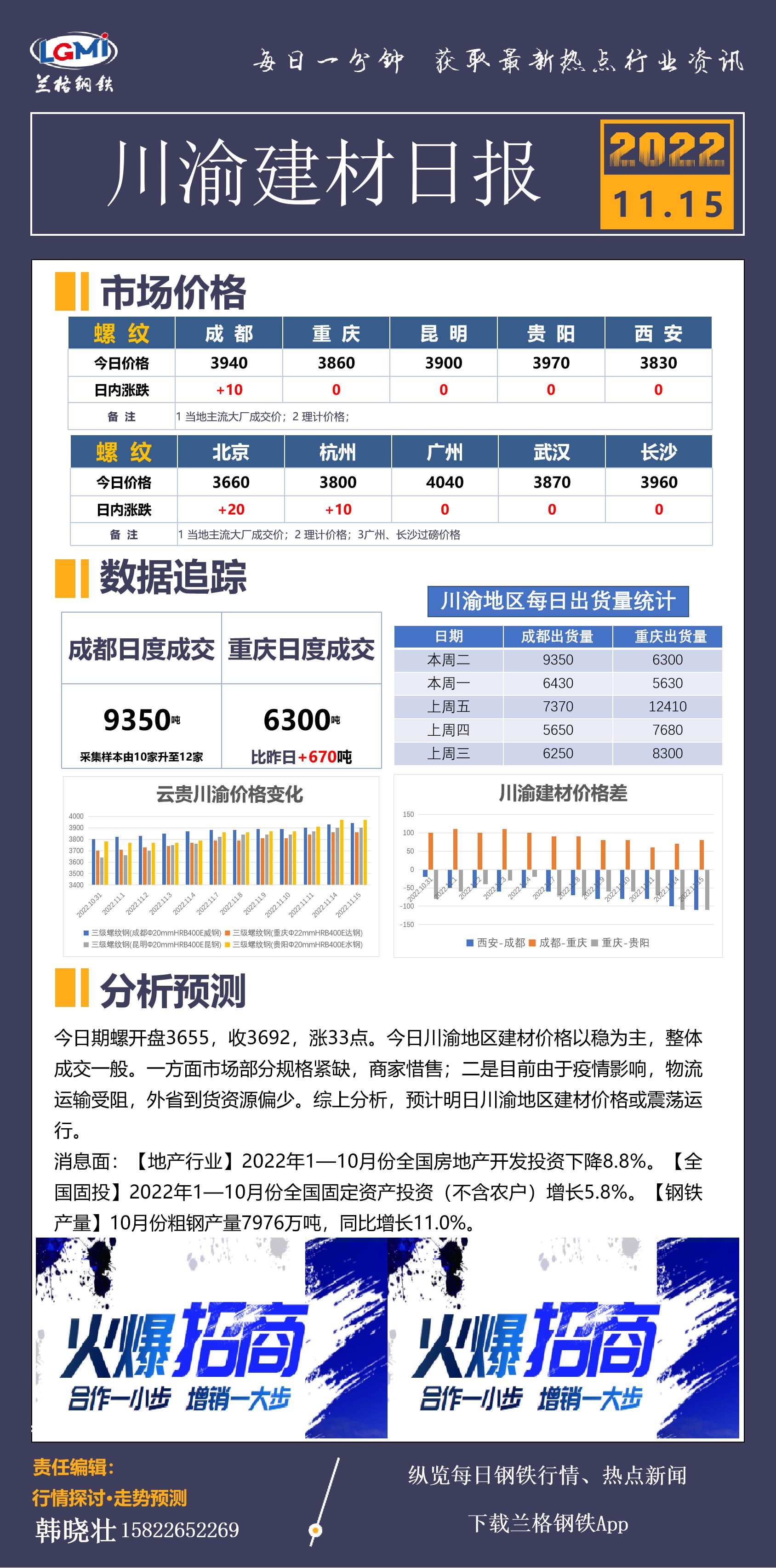 - 川渝地区建材价格以稳为主 成交一般2022/11/15