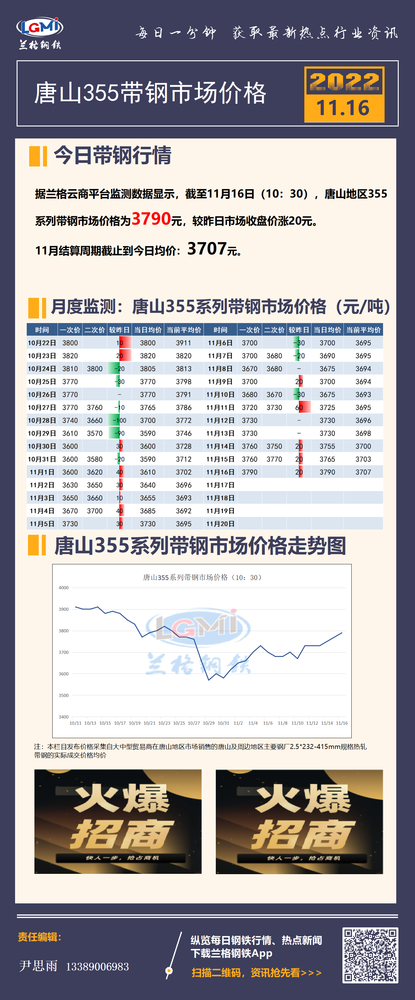 - 11月16日(10:30)唐山355系带钢市场价格2022/11/16