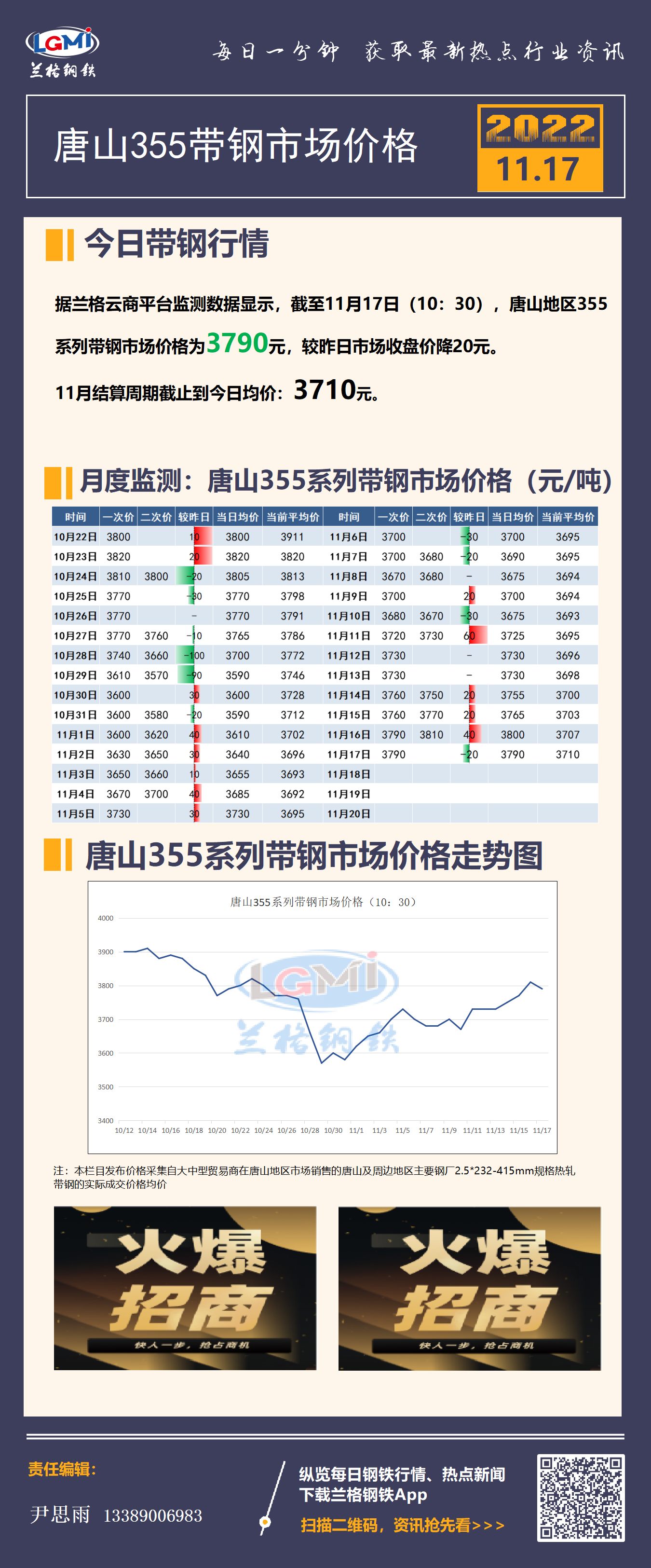 - 11月17日(10:30)唐山355系带钢市场价格2022/11/17