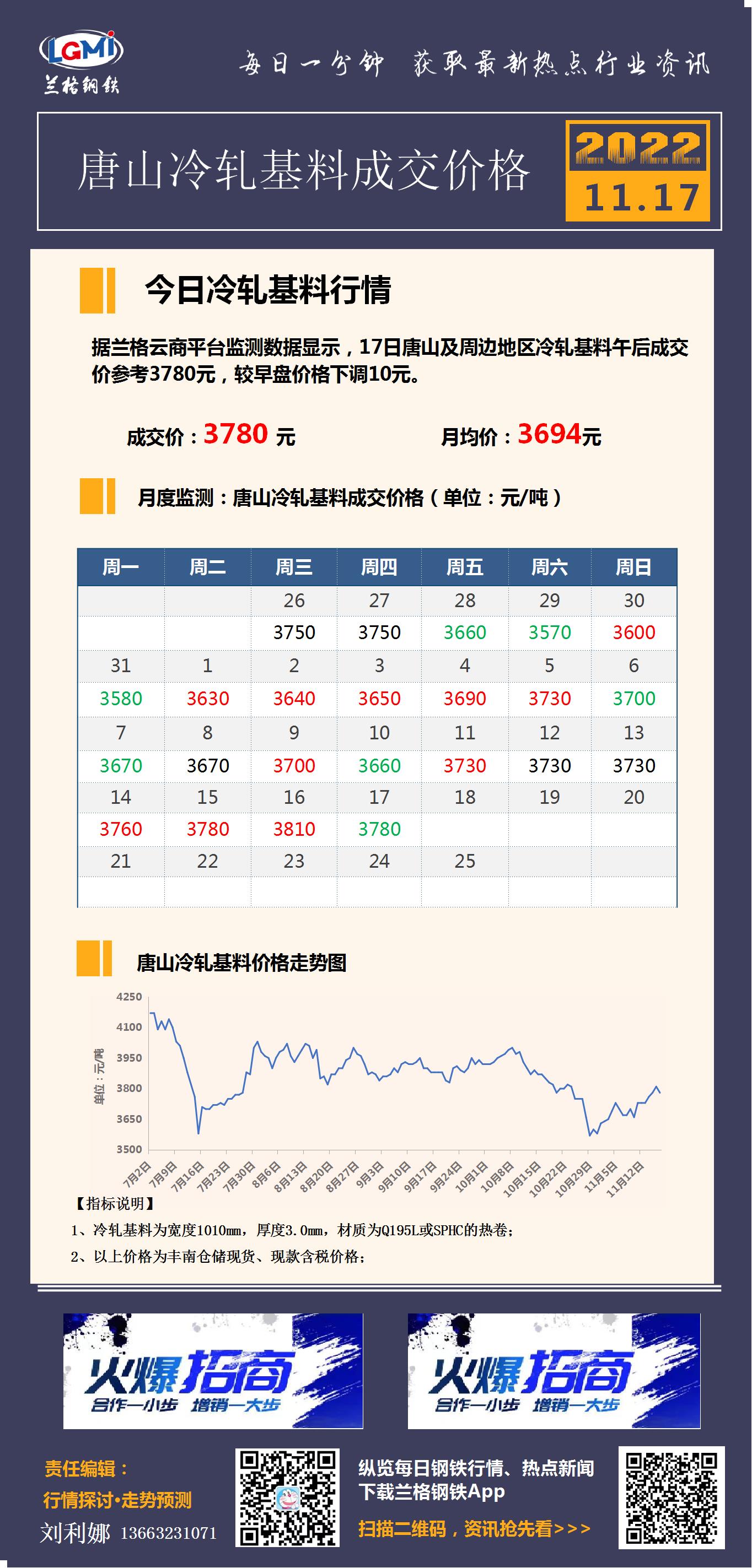 - 11月17日兰格钢铁网废钢流通基准价格指数2538涨82022/11/17
