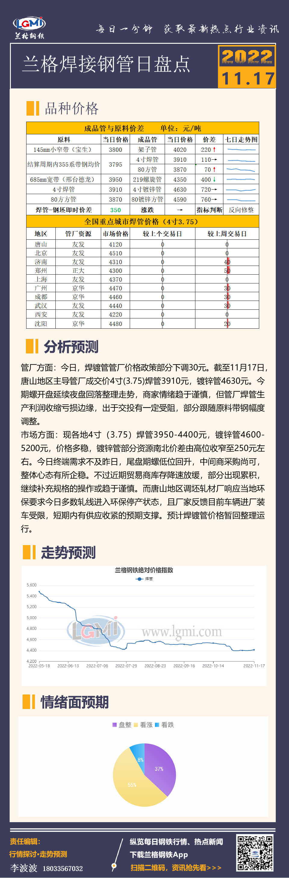 - 兰格焊管日盘点:期现联动向上 补库情绪得以带动2022/11/16
