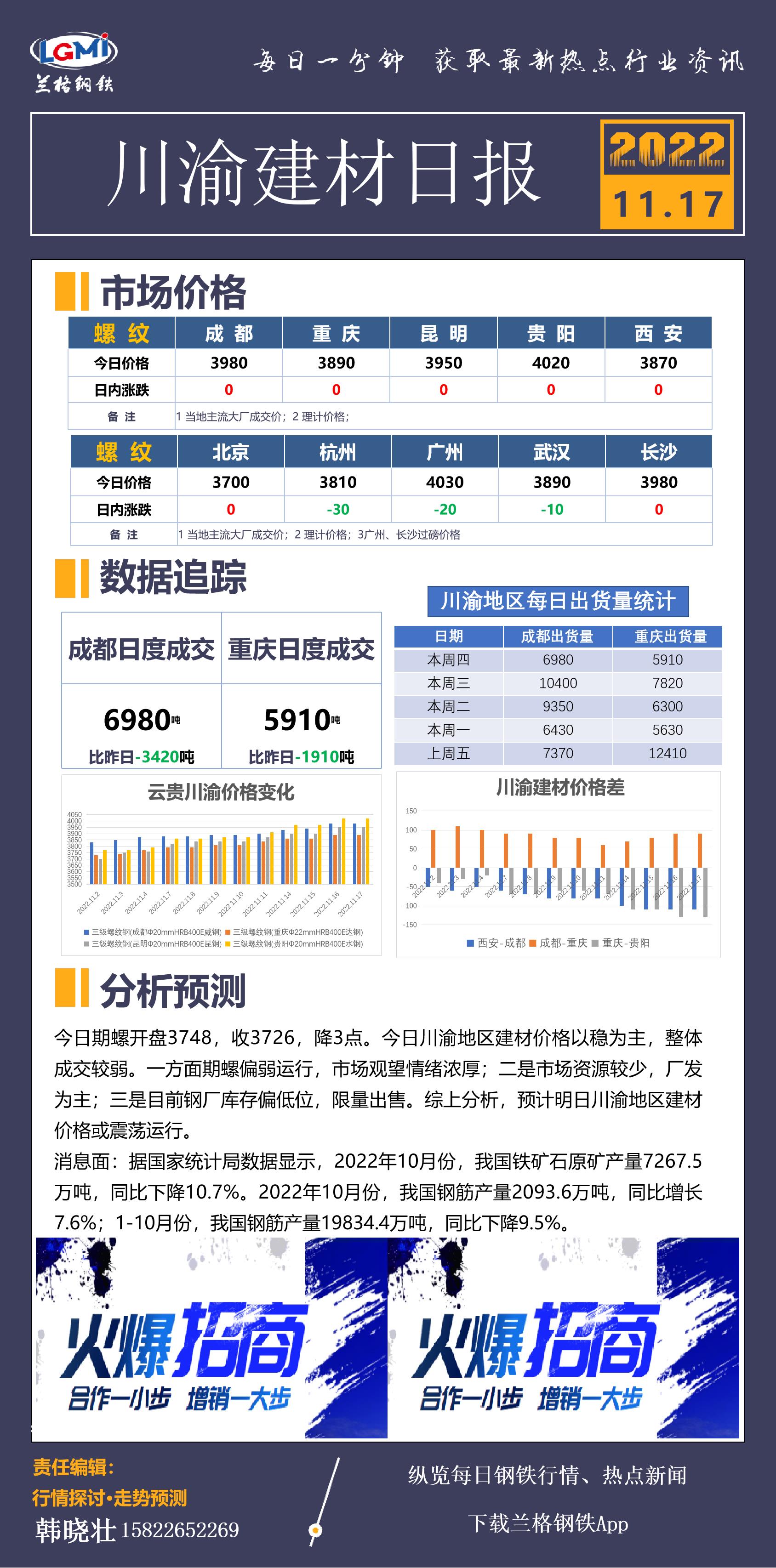 - 川渝地区建材价格以稳为主 成交较弱2022/11/17