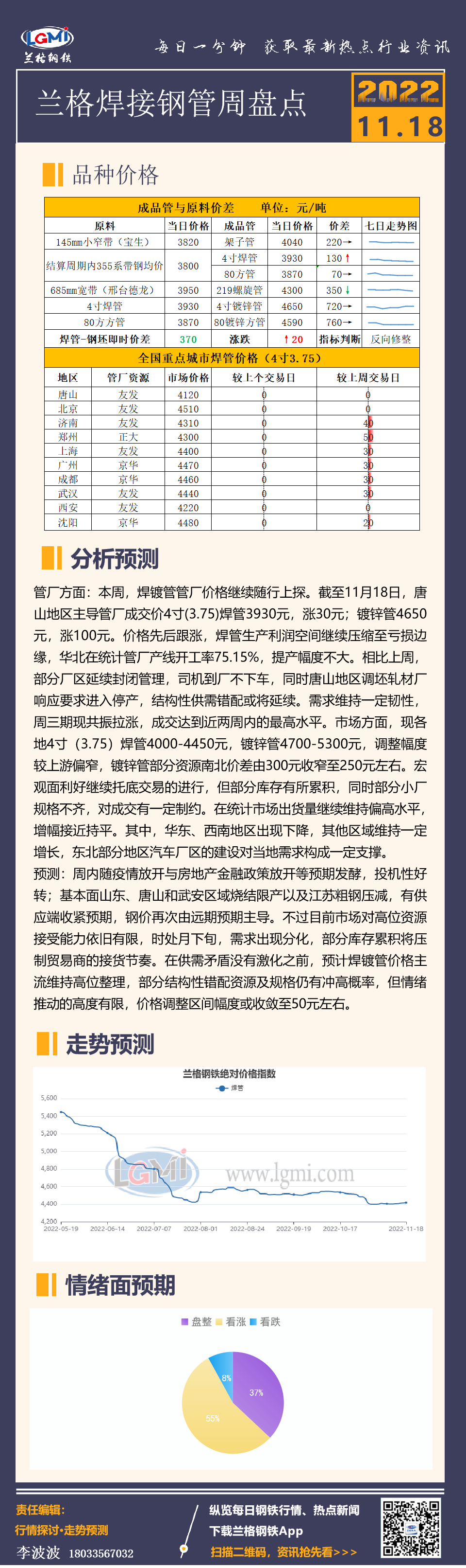 - 兰格焊管周盘点:政策利好带动预期 价格持续震荡上探2022/11/18