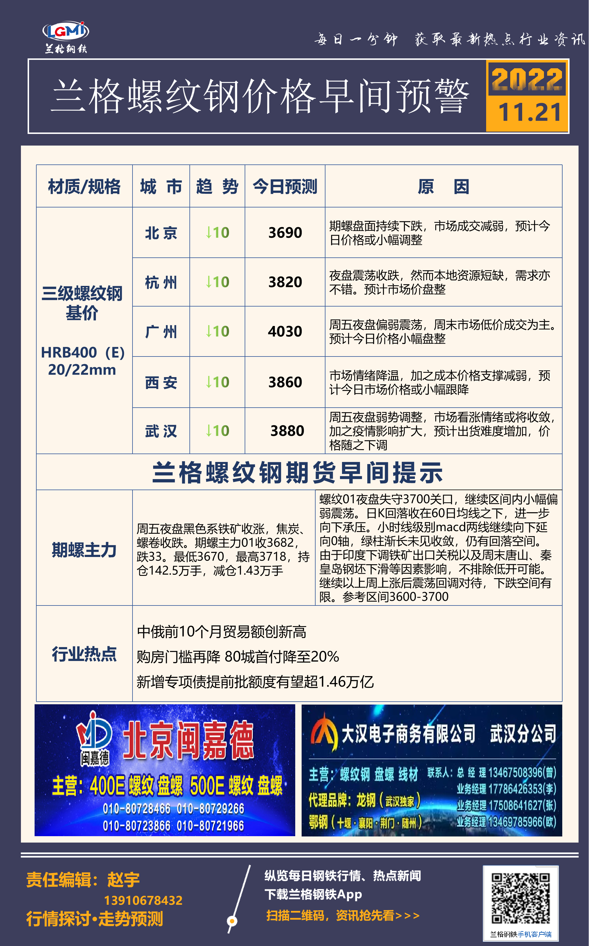 11月21日兰格螺纹钢价格早间预警