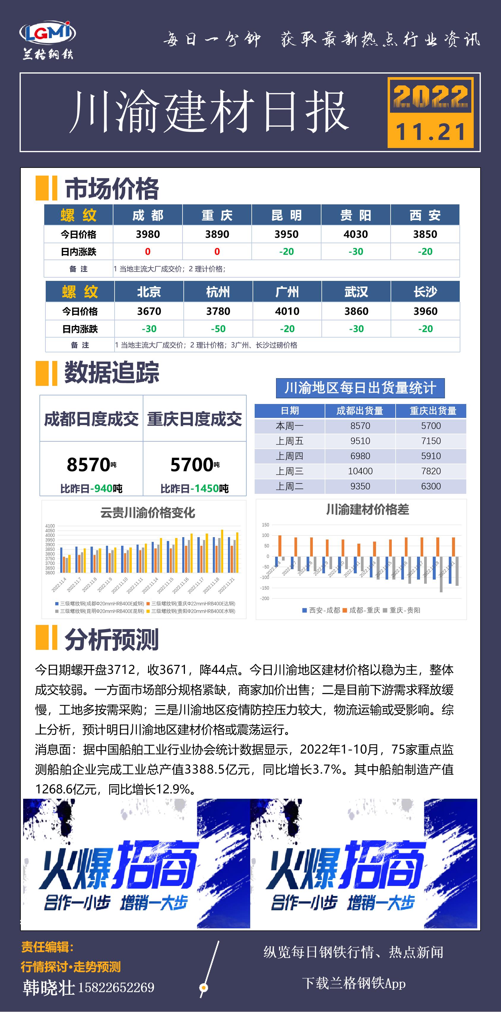 - 川渝地区建材价格以稳为主 成交较弱2022/11/21