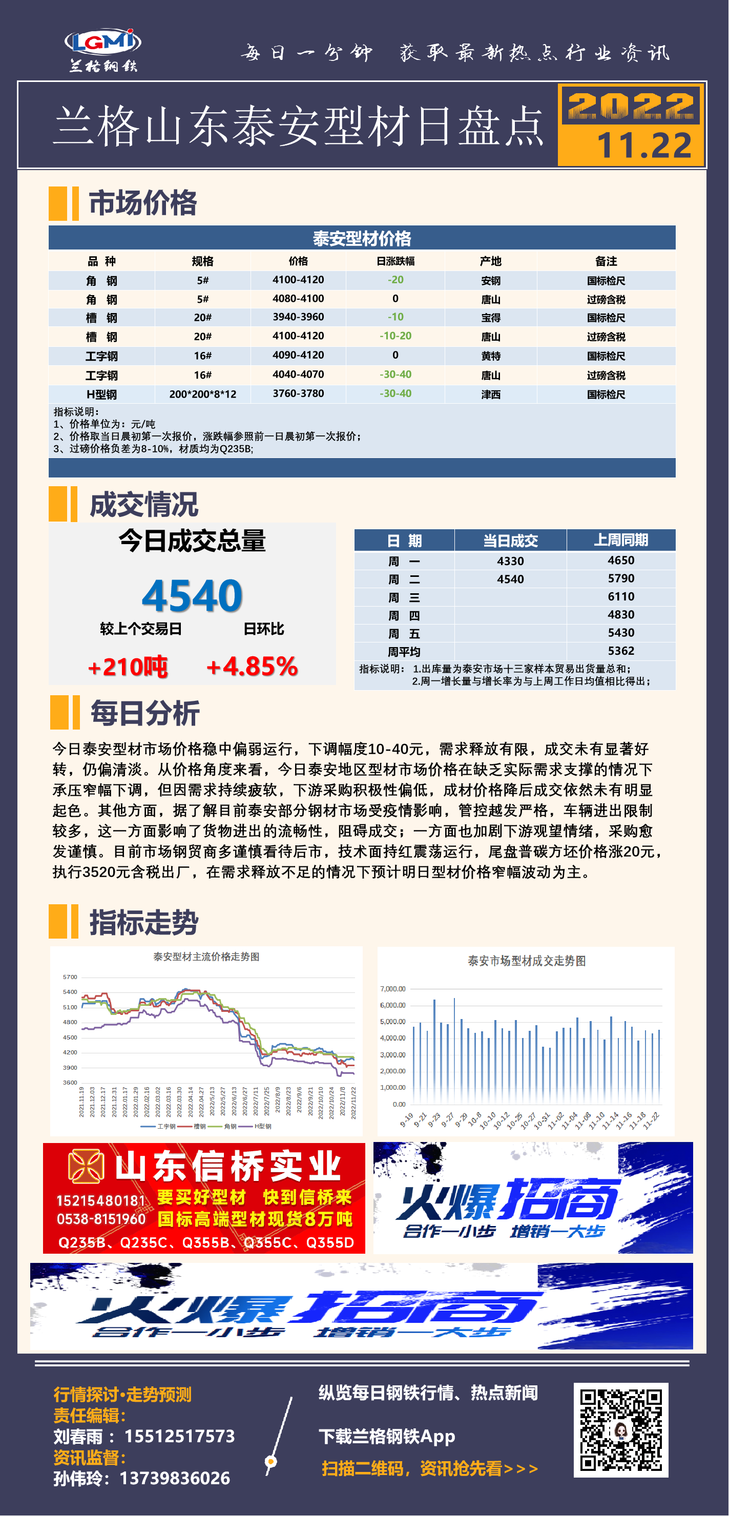 - 唐山型材日盘点:价格降后回调 低价资源刺激下游采货倍显积极2022/11/22