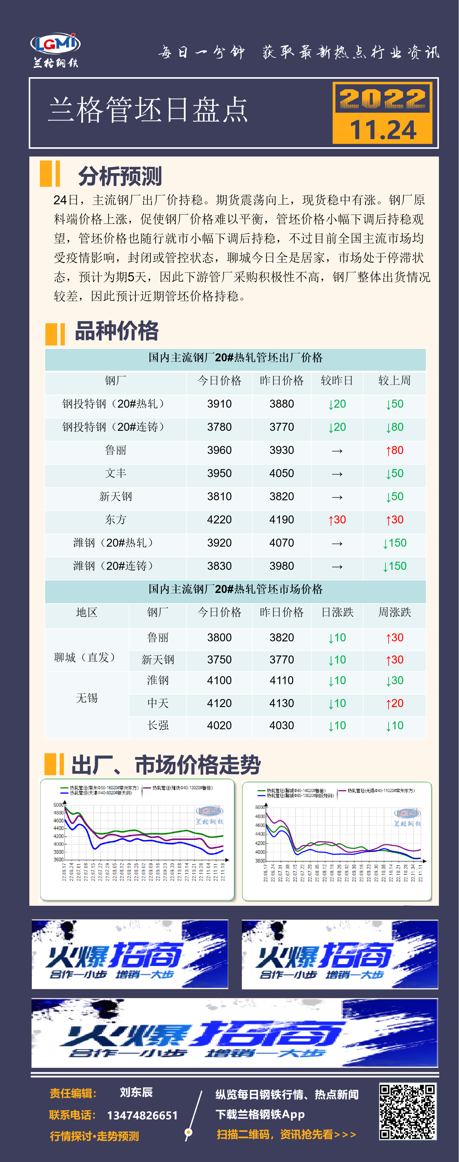 - 11月24日兰州兰鑫建筑钢材出厂价格平稳2022/11/24