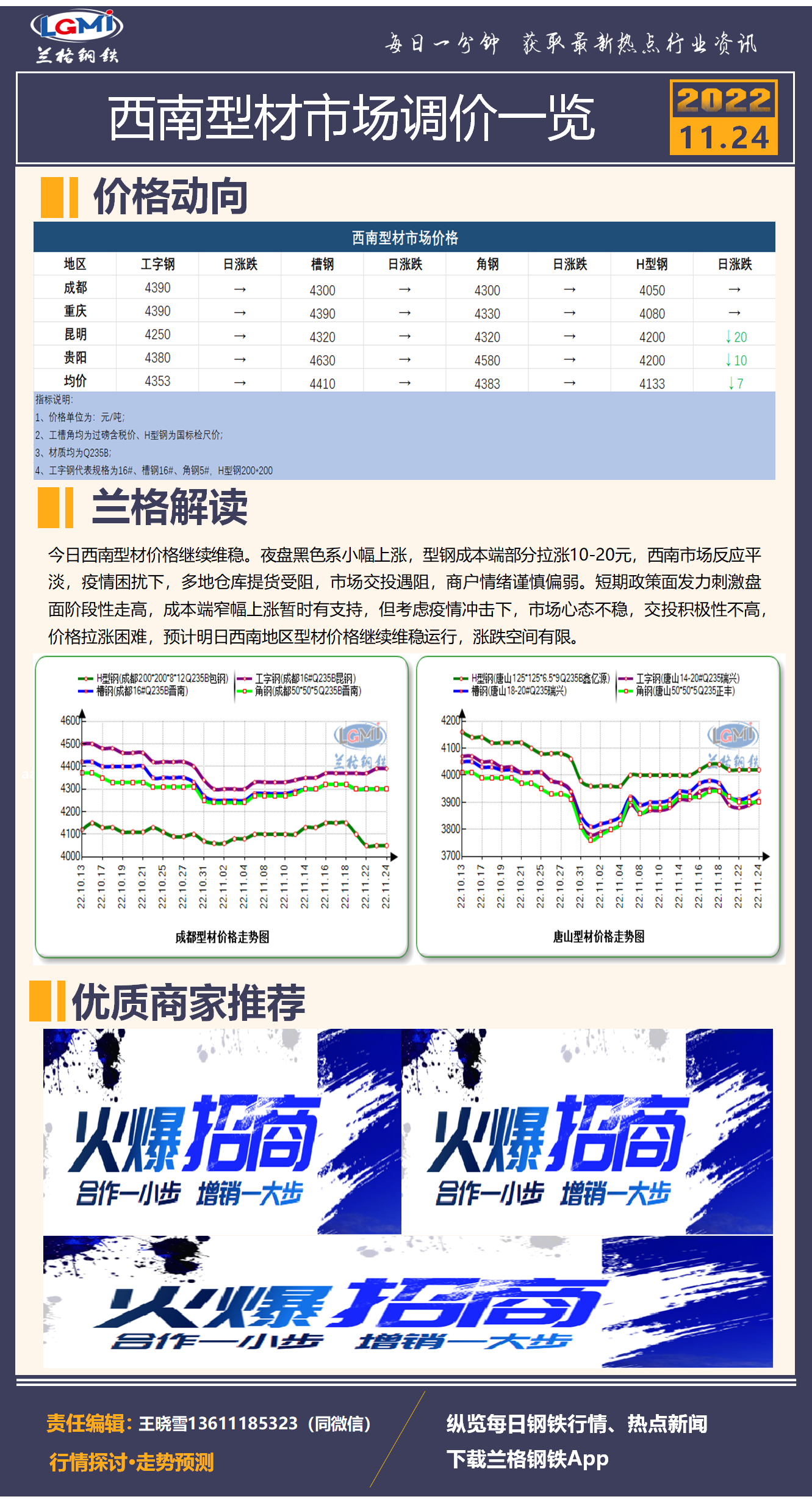 - 11月24日贵阳长乐钢铁建筑钢材出厂价格平稳2022/11/24