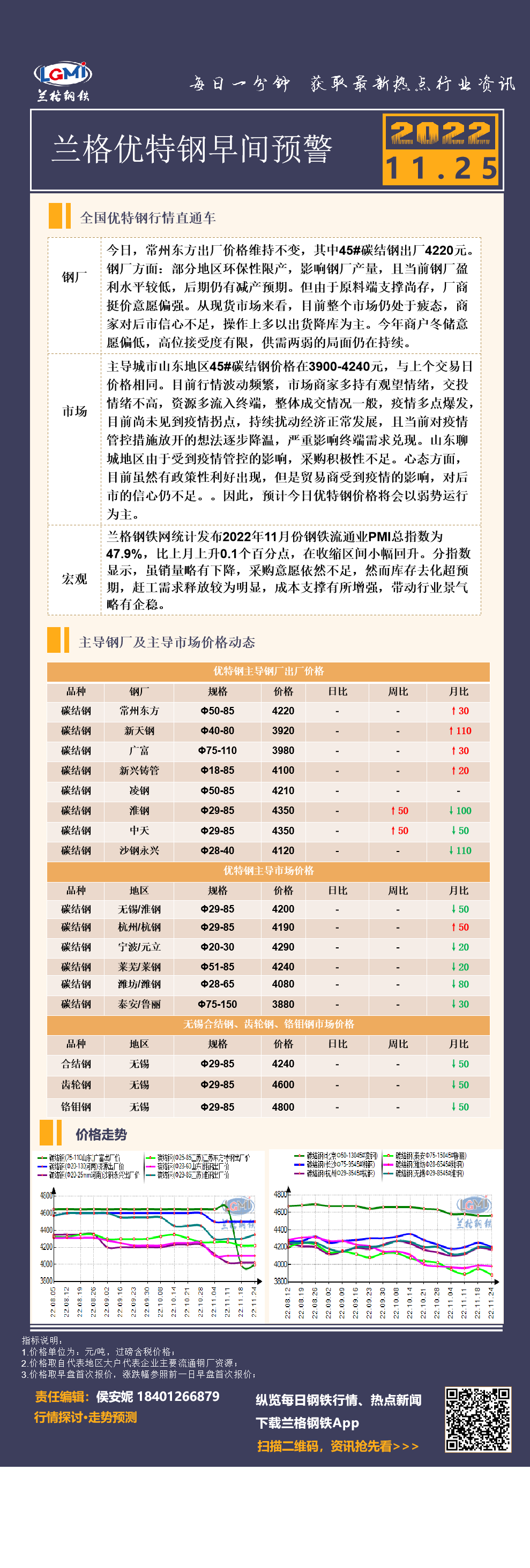 11月25日(9:30)兰格优特钢早间预警