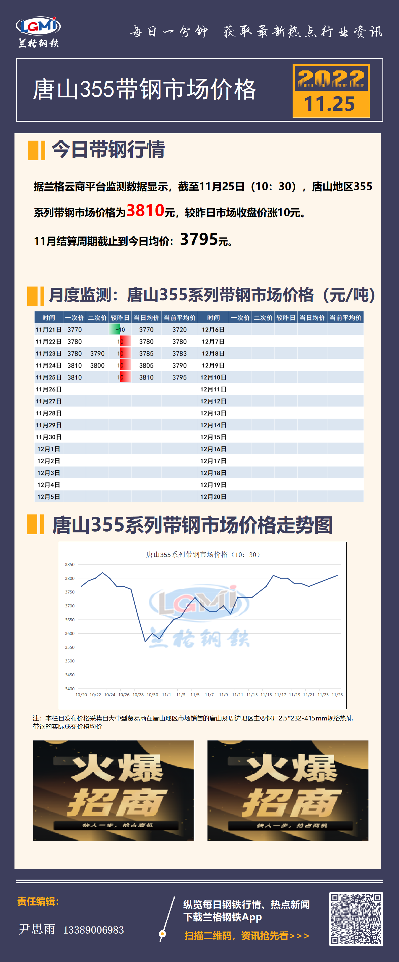 - 11月25日唐山东海带钢出厂价格稳2022/11/25