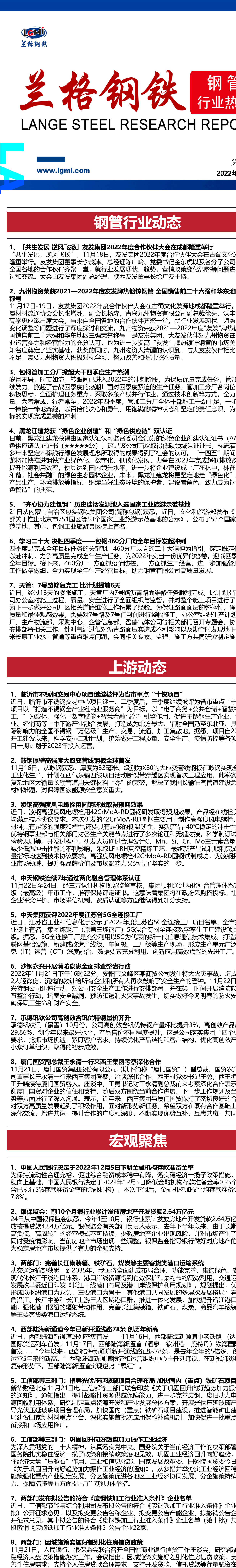 发表日期:2022/11/26 11:02:09 兰格钢铁