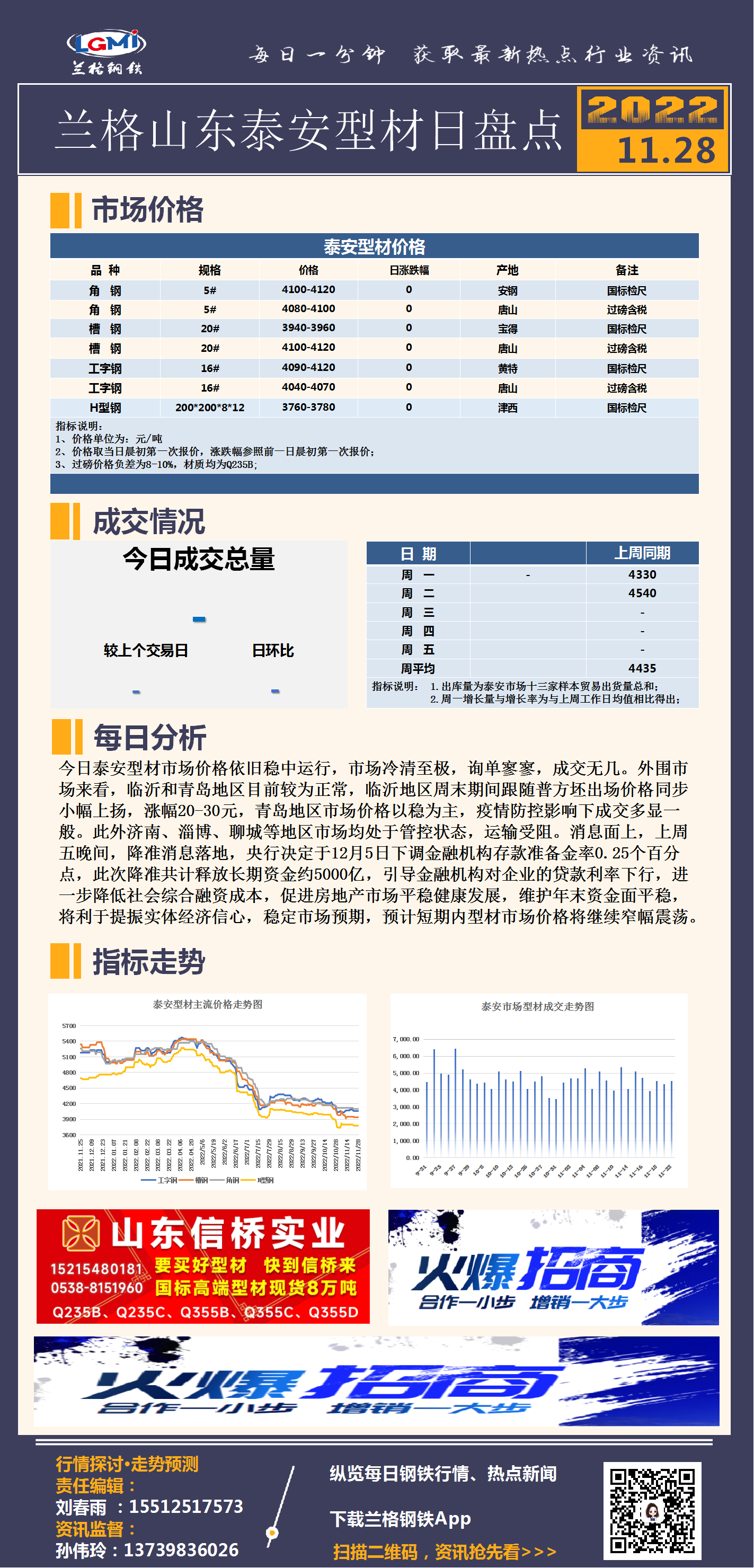 - 泰安型材日盘点:市场冷清 利好消息提振 周内价格窄幅震荡2022/11/28