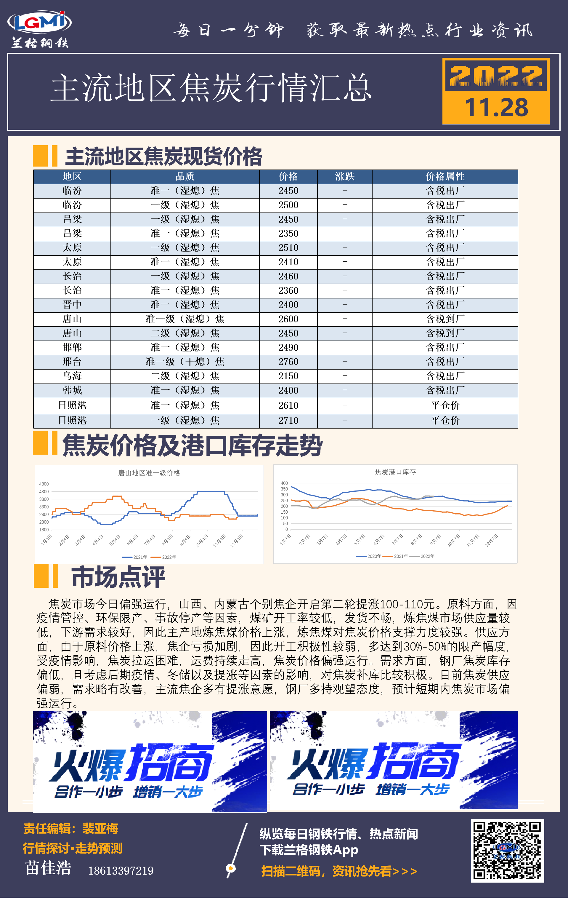 - 11月28日主流地区焦炭行情汇总2022/11/28