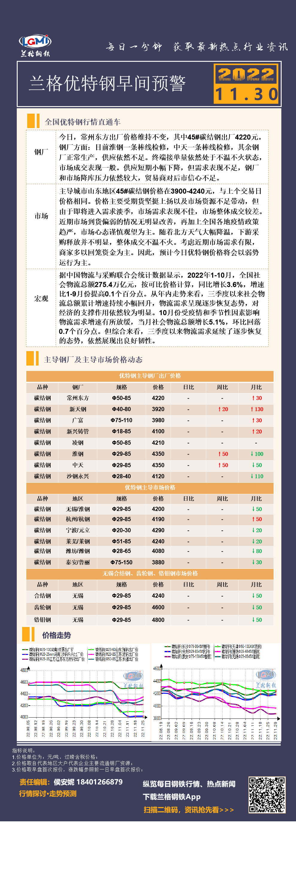 11月30日(9:30)兰格优特钢早间预警