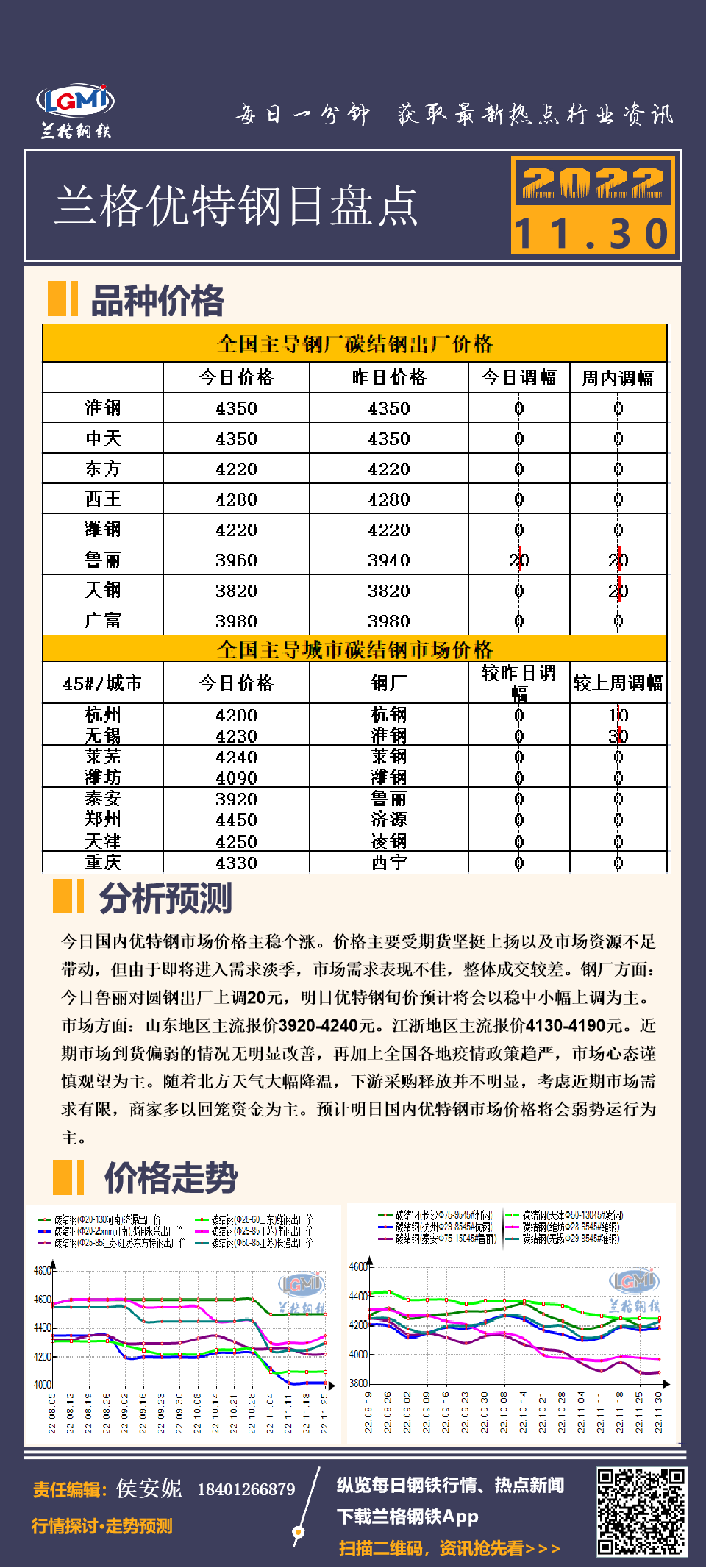 发表日期:2022/11/30 15:17:18 兰格钢铁