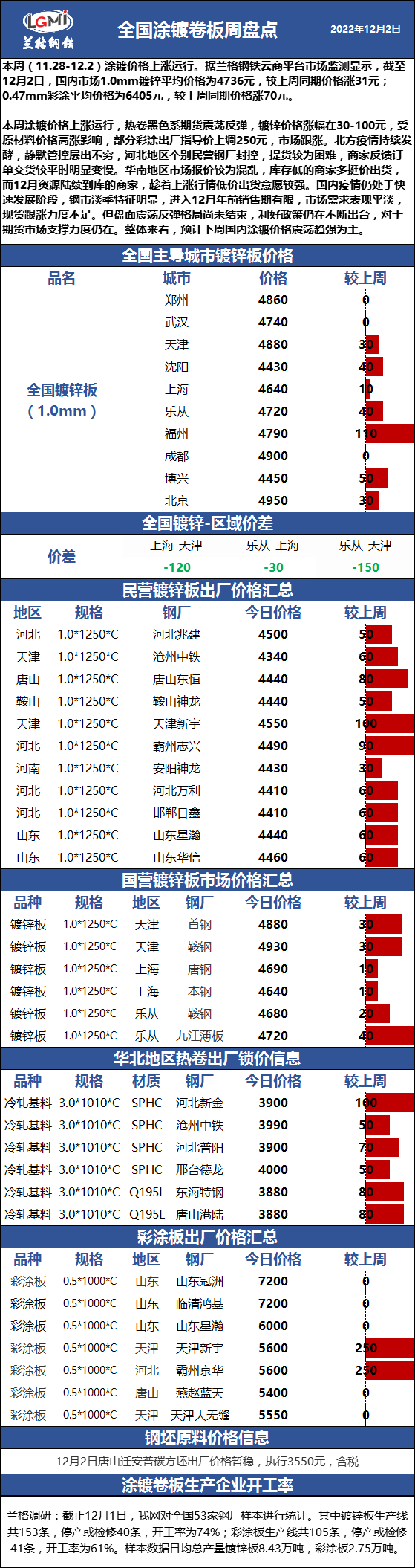 兰格涂镀板卷周盘点:涂镀价格上涨运行 下周震荡趋强为主