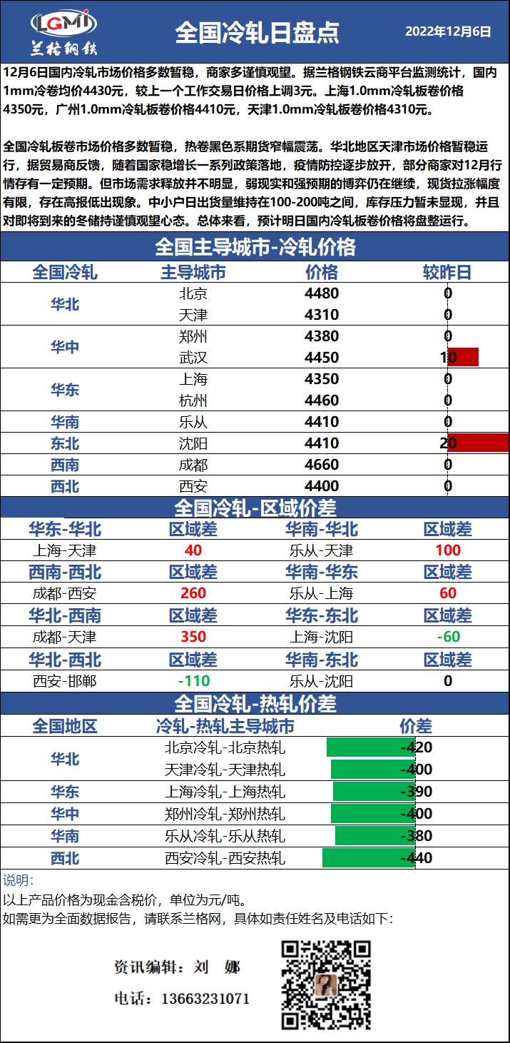 兰格冷轧板卷日盘点:冷轧价格多数暂稳 商家谨慎观望