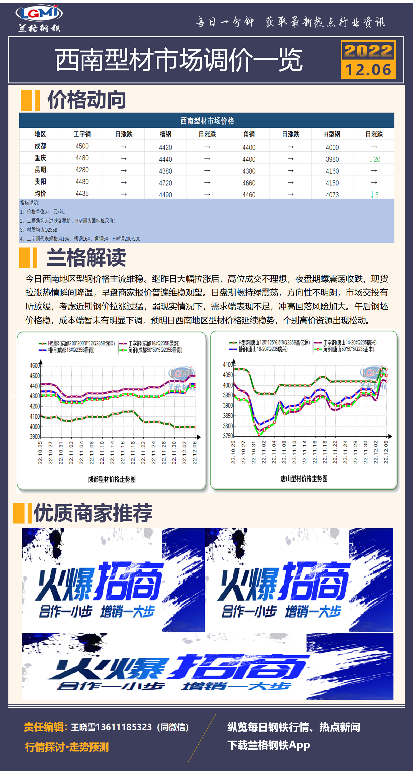 - 12月6日宁夏钢铁建筑钢材出厂价格平稳2022/12/6